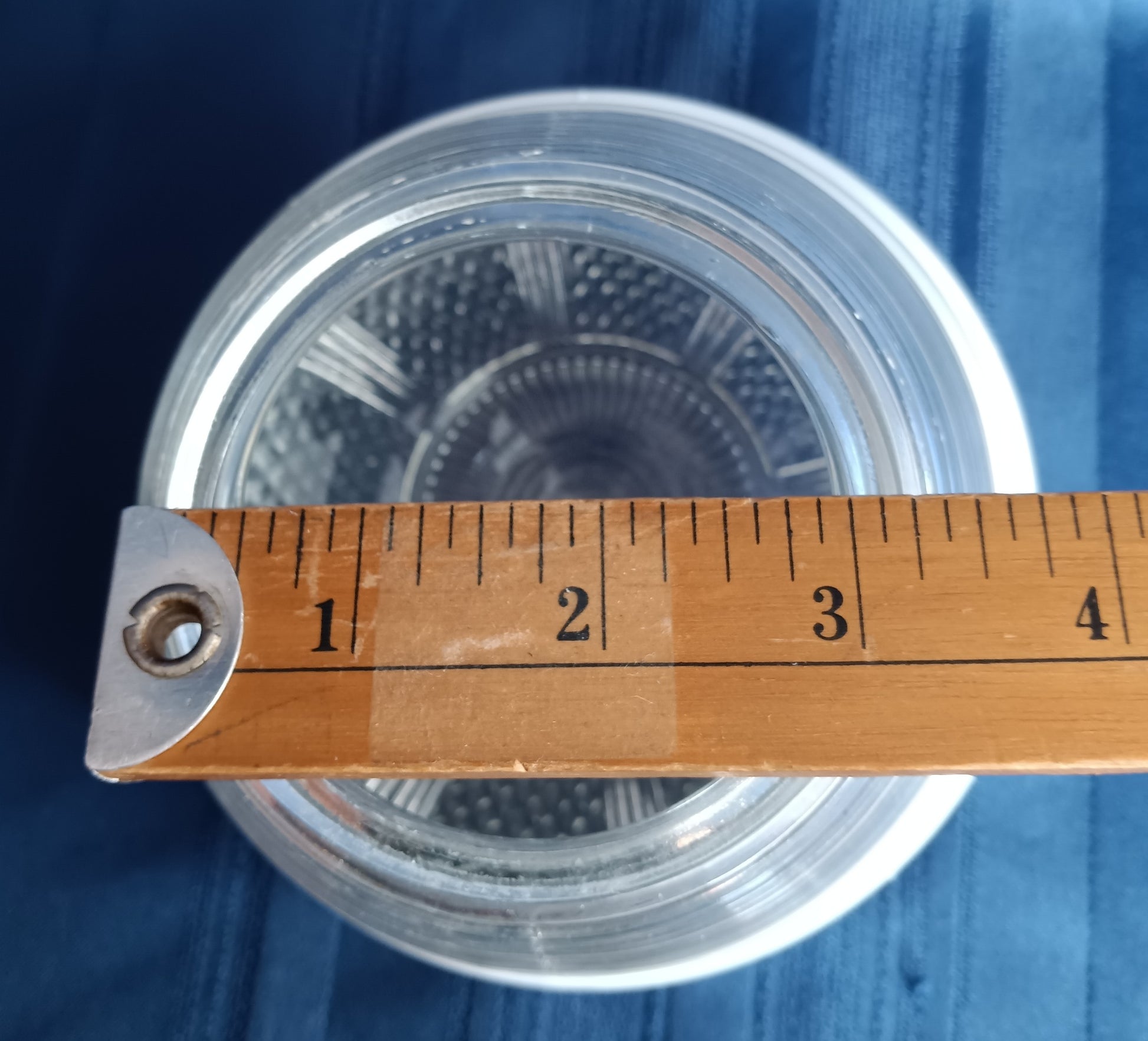 Measures approx.: 6" H x 7” wide. The interior ring opening is 2 3/4”, the outer edge of the opening measures 3 1/4” in diameter. Lampshade sits within a 3.25" fitter/receptacle. Before place order, please check the measurement of you lamp for fitter size. The fitter is the outer diameter of the lip which is inserted into the fixture shade holder.