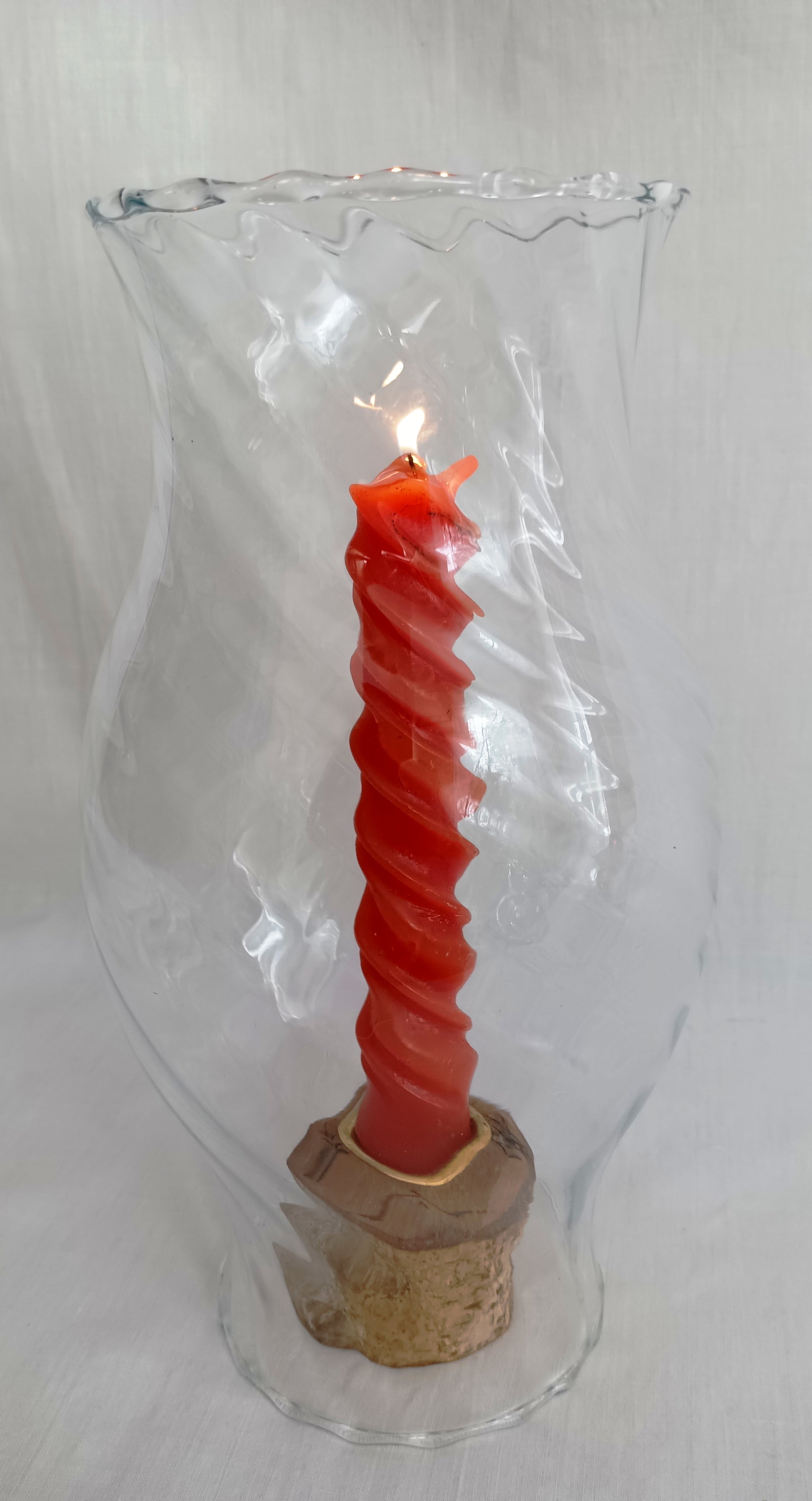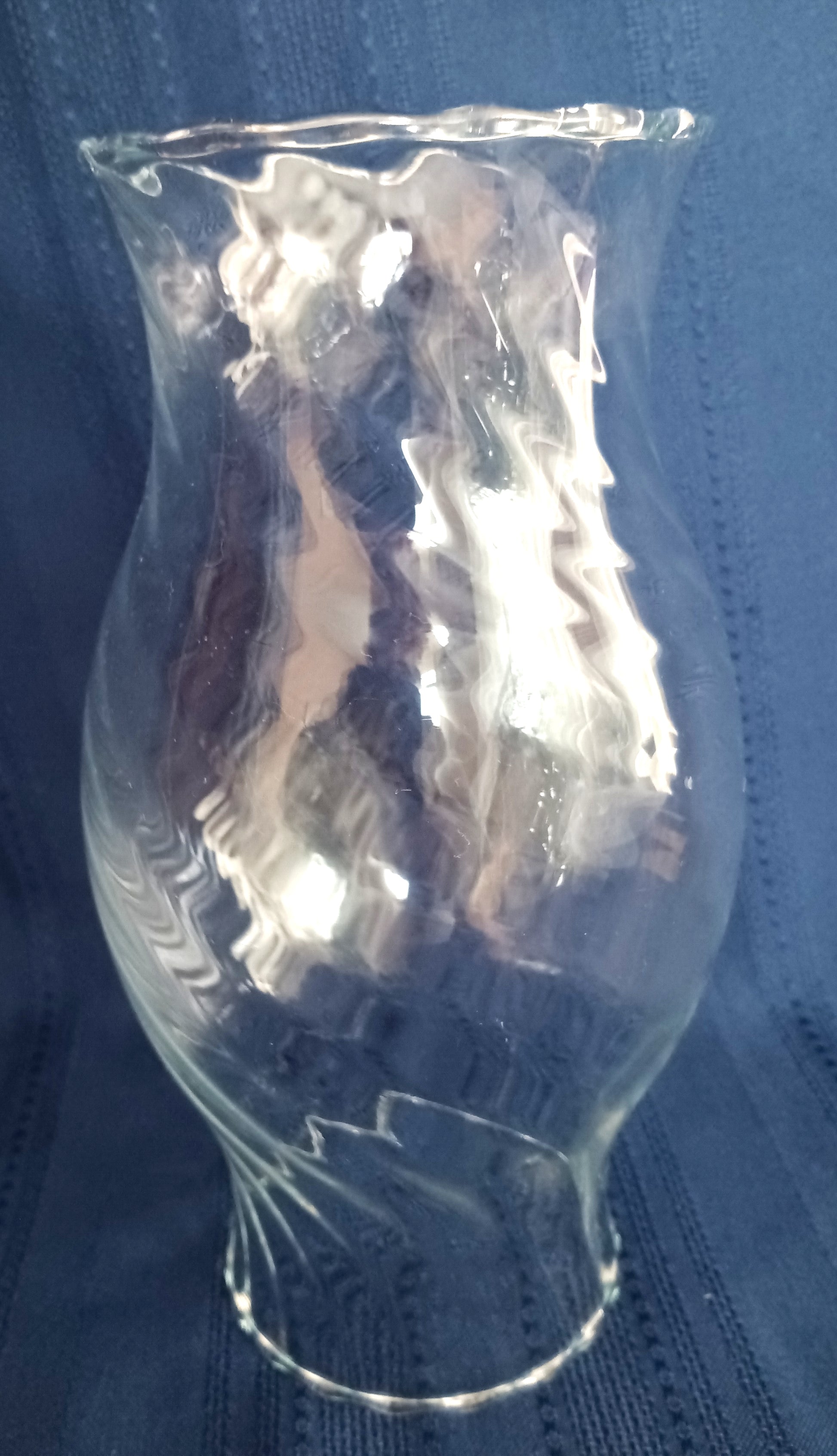 This sale is for clear glass, large hurricane shade/chimney for candle holder lamp. It features swirl design and crimped ends. Never been used.