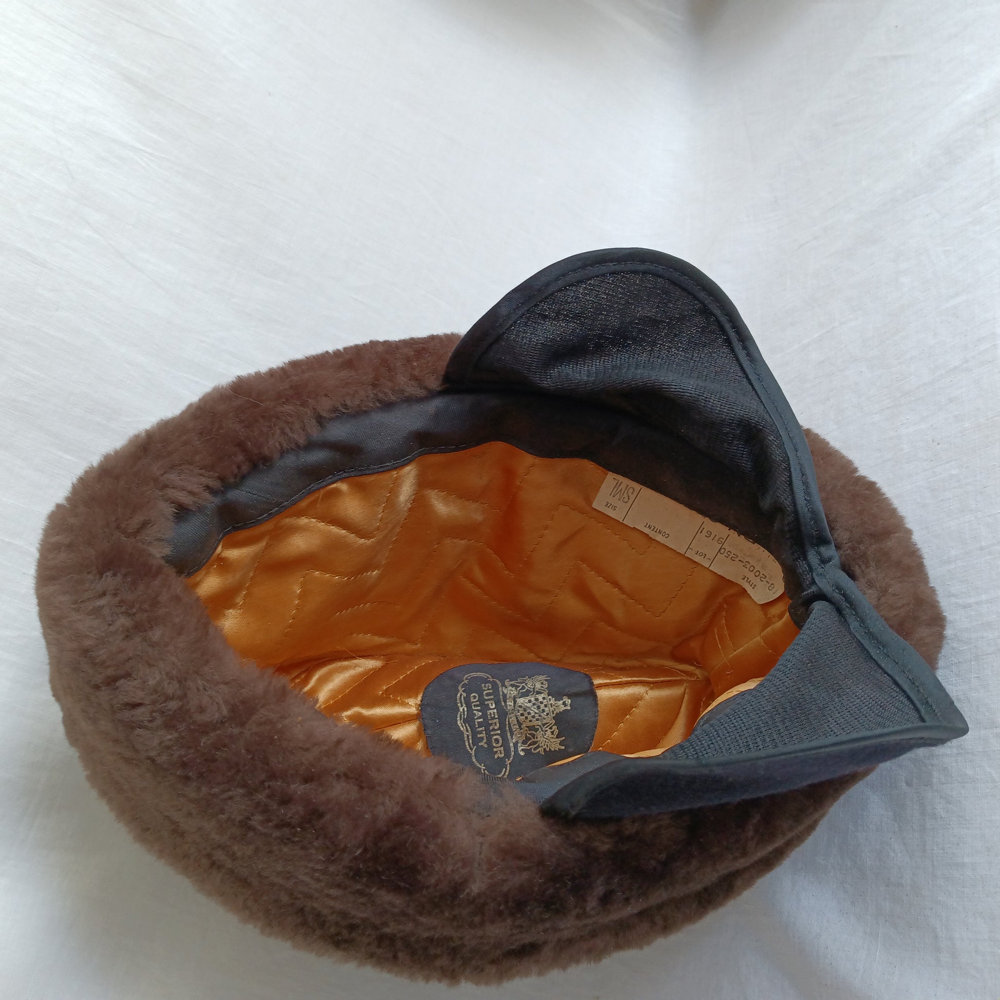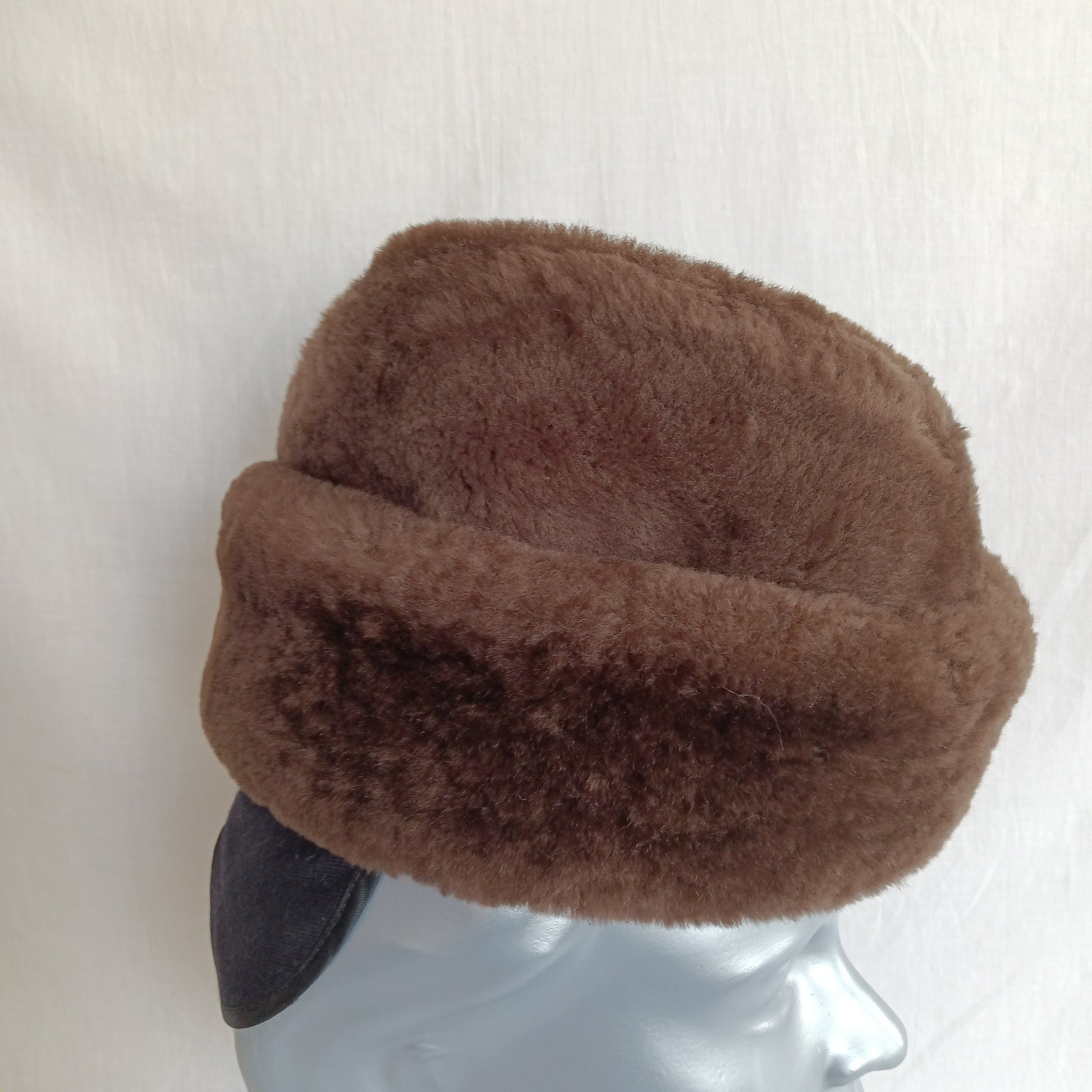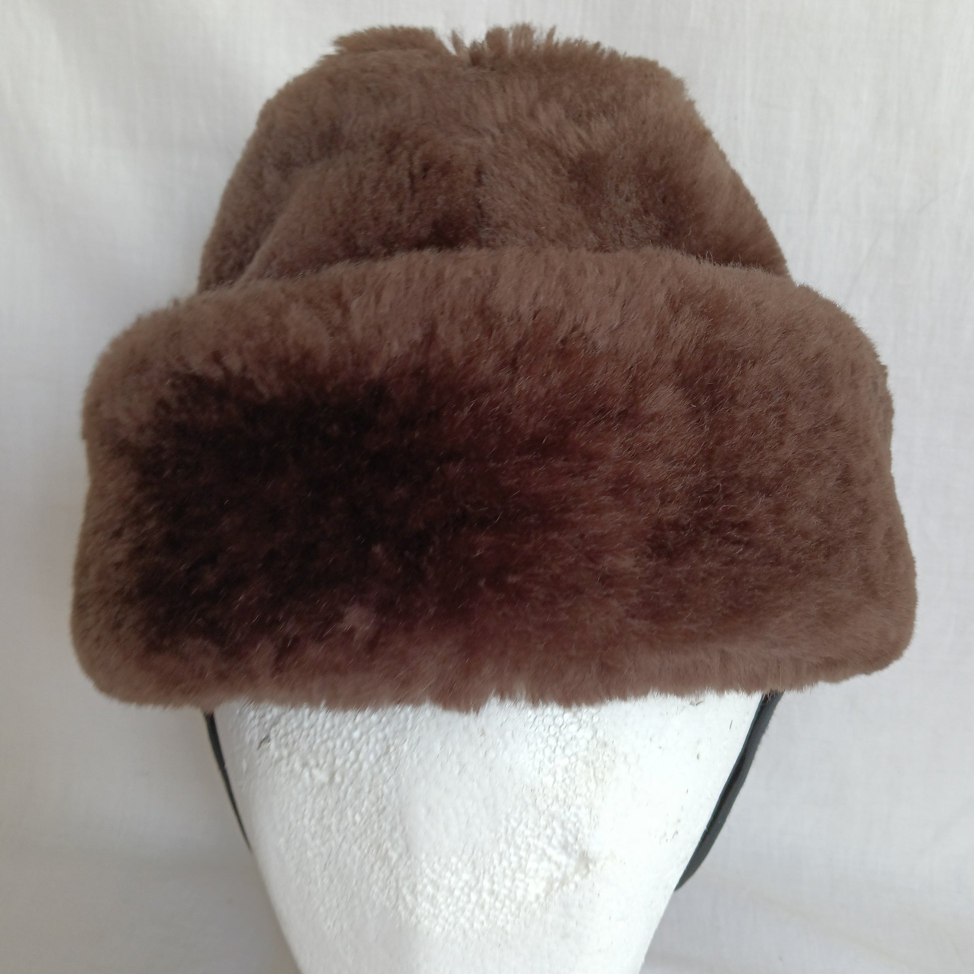 Vintage Cossack Brown Faux Fur Winter Hat for Men Heavy Padded Very Warm Hat Cap Ear Flaps Quilted Satin Lining-USA-Small Size