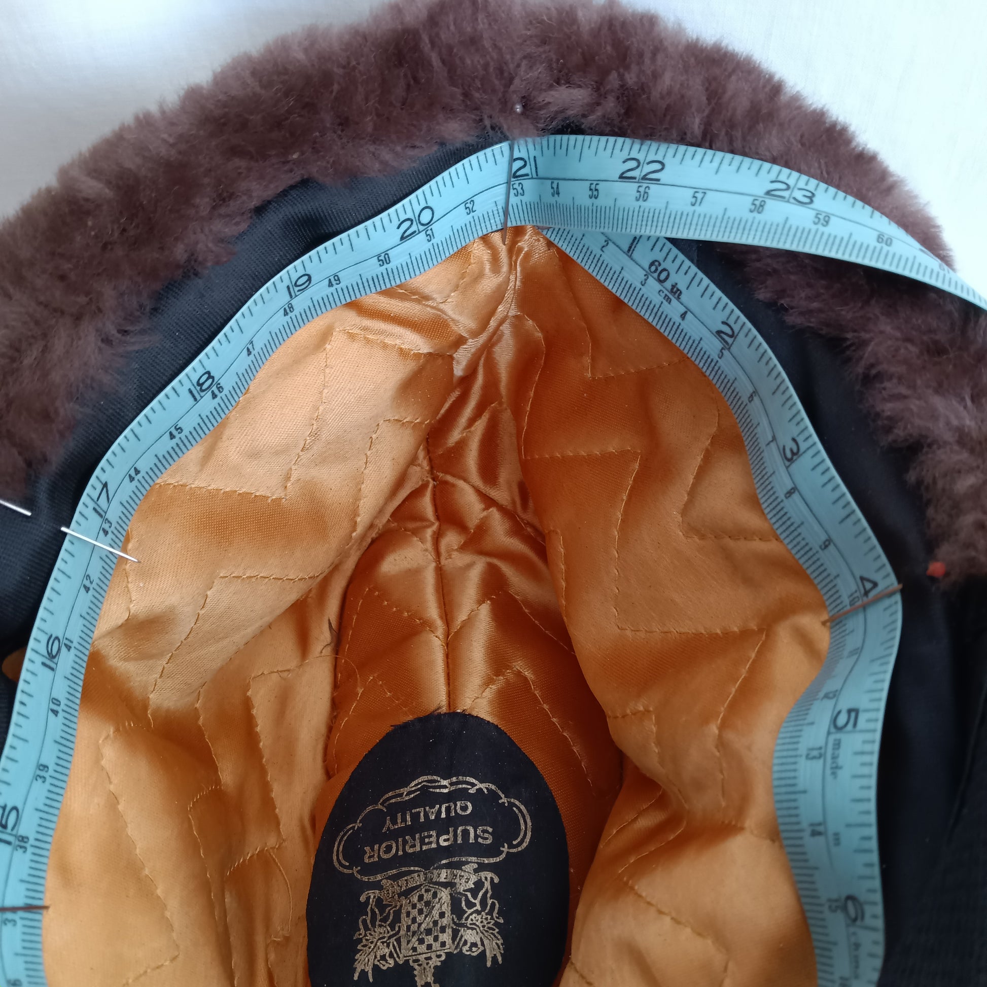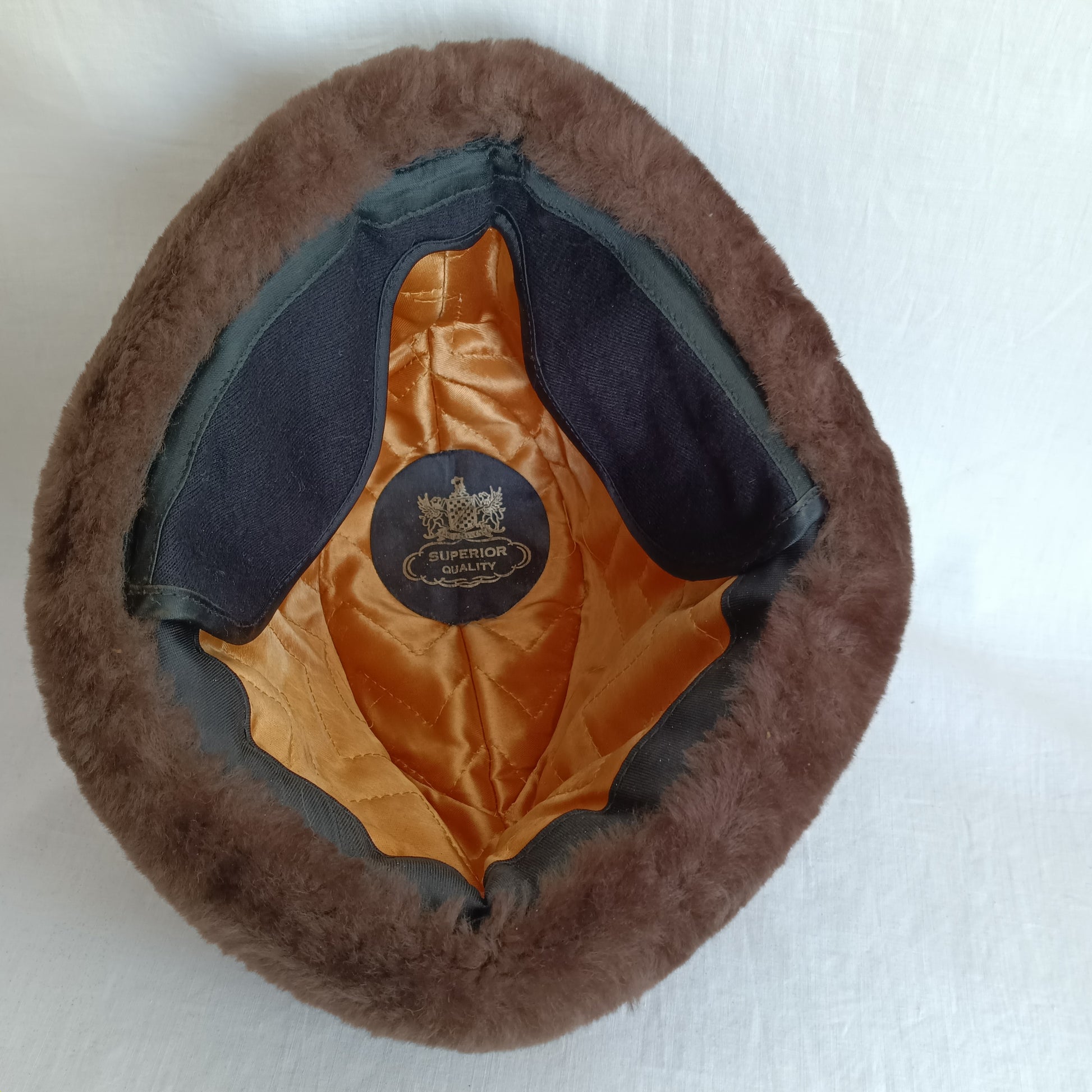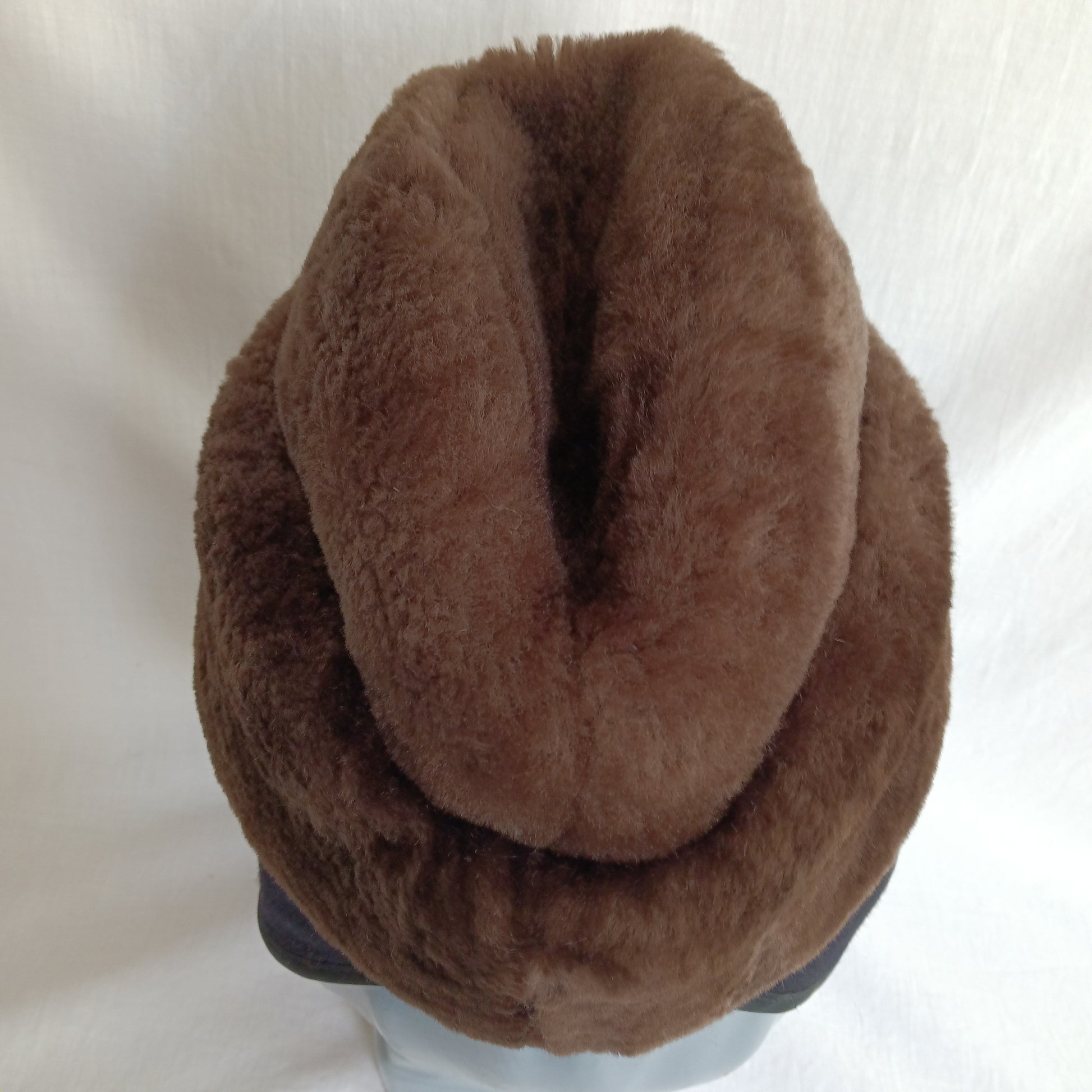 Vintage Cossack Brown Faux Fur Winter Hat for Men Heavy Padded Very Warm Hat Cap Ear Flaps Quilted Satin Lining-USA-Small Size