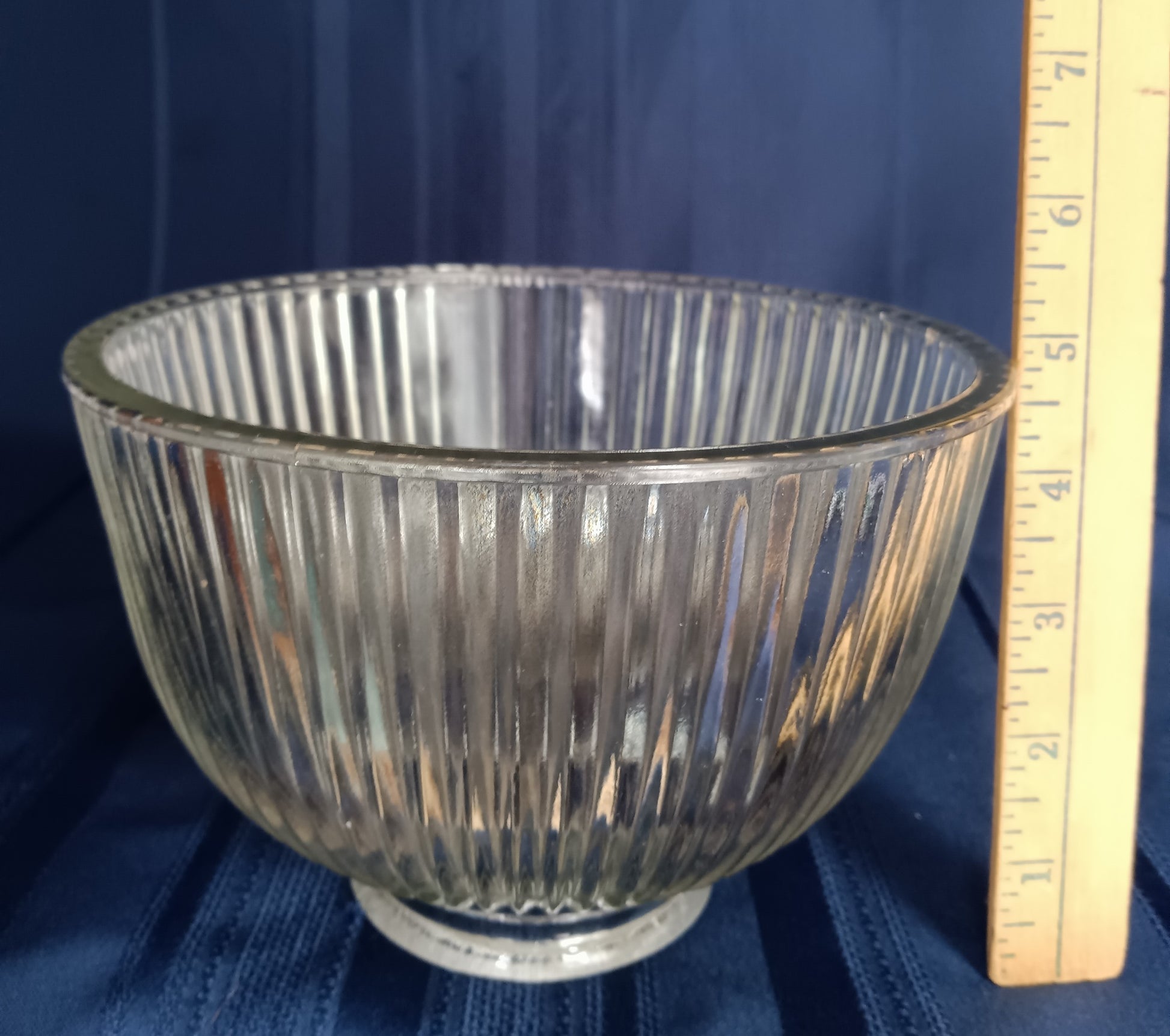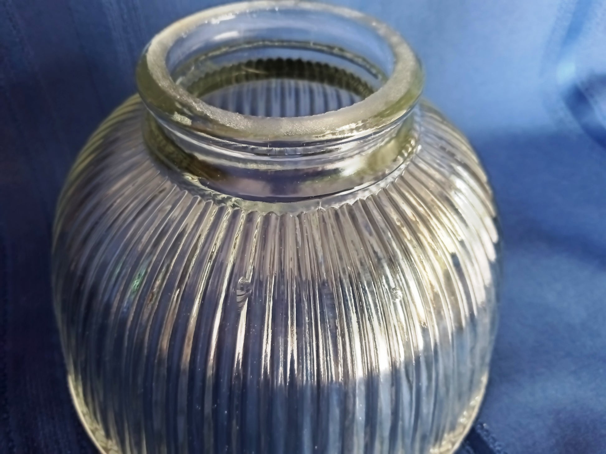 For sale is a vintage Mid Century Modern dome shape clear heavy glass replacement lampshade/ small diffuser/globe/cover light. It features ribbed design, Holophane style.