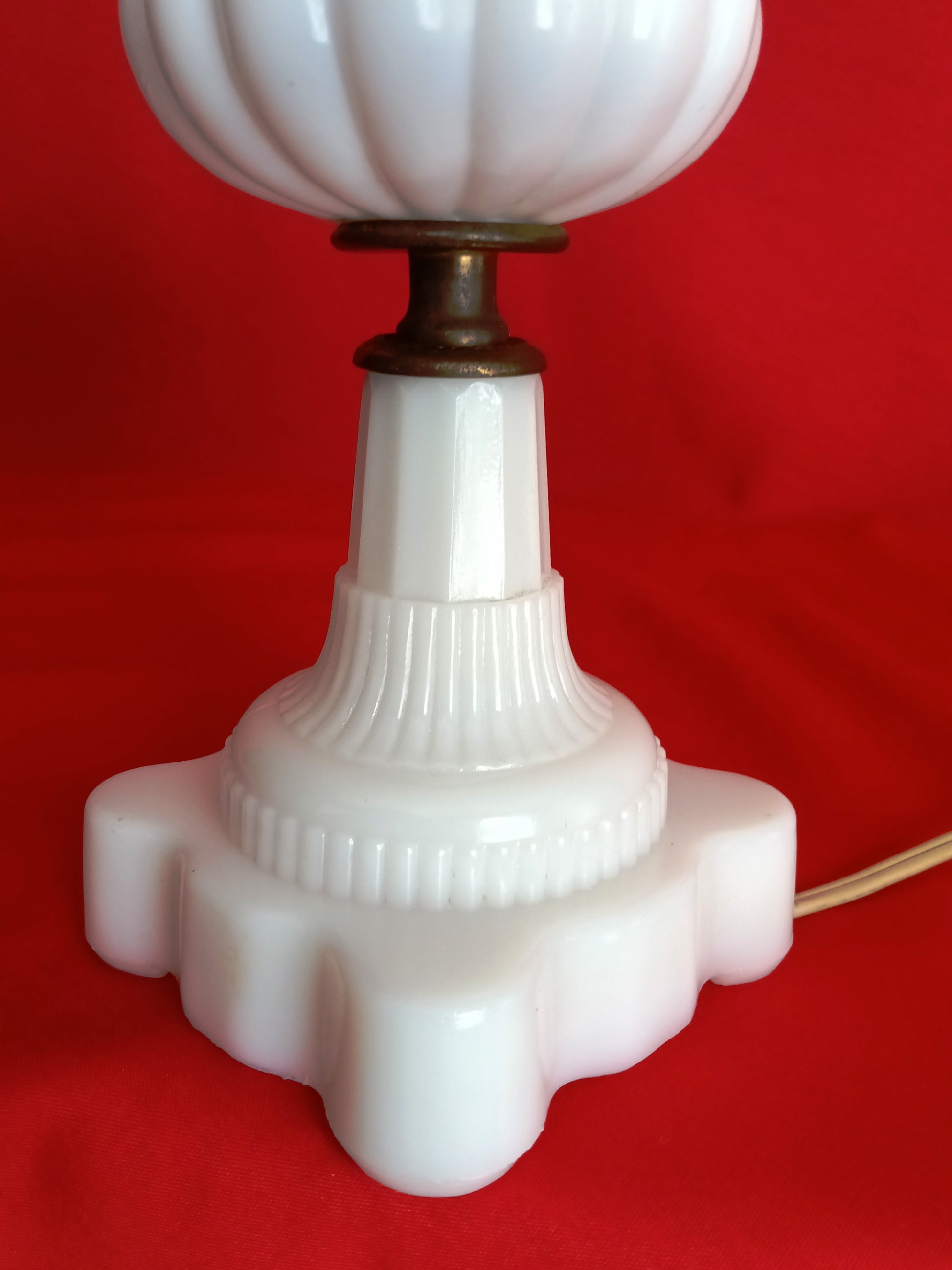 Vintage Heavy White Milk Glass Table Lamp Desk Bedroom Accent Lamp 10 1/2" Tall