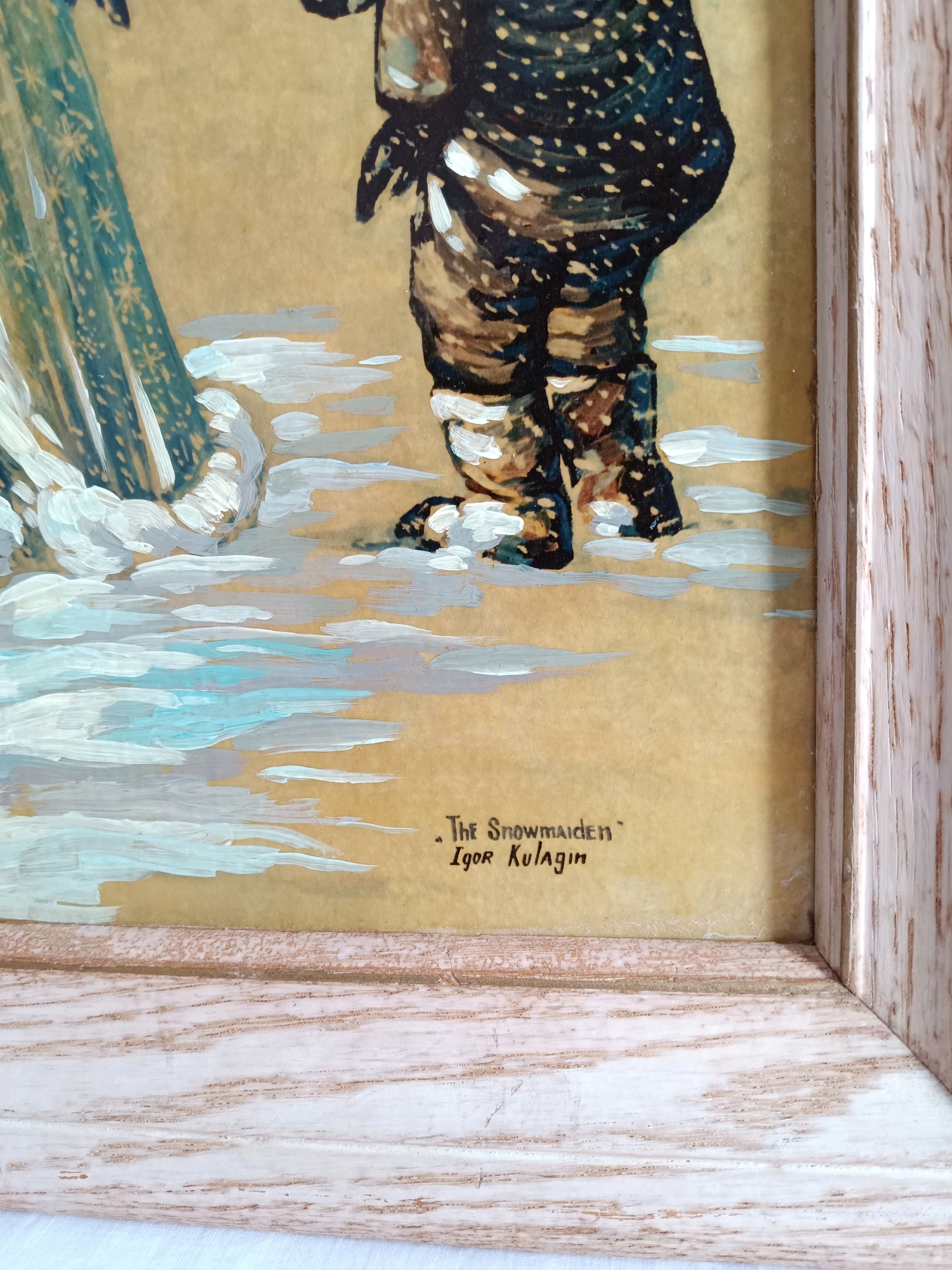 Vintage Impressionism Painting Folk Art Russian Folktale The Snow Maiden Oil Painting on Board Covered w/Enamel Paint Distress Oak Frame Artist Signed Igor Kulagin