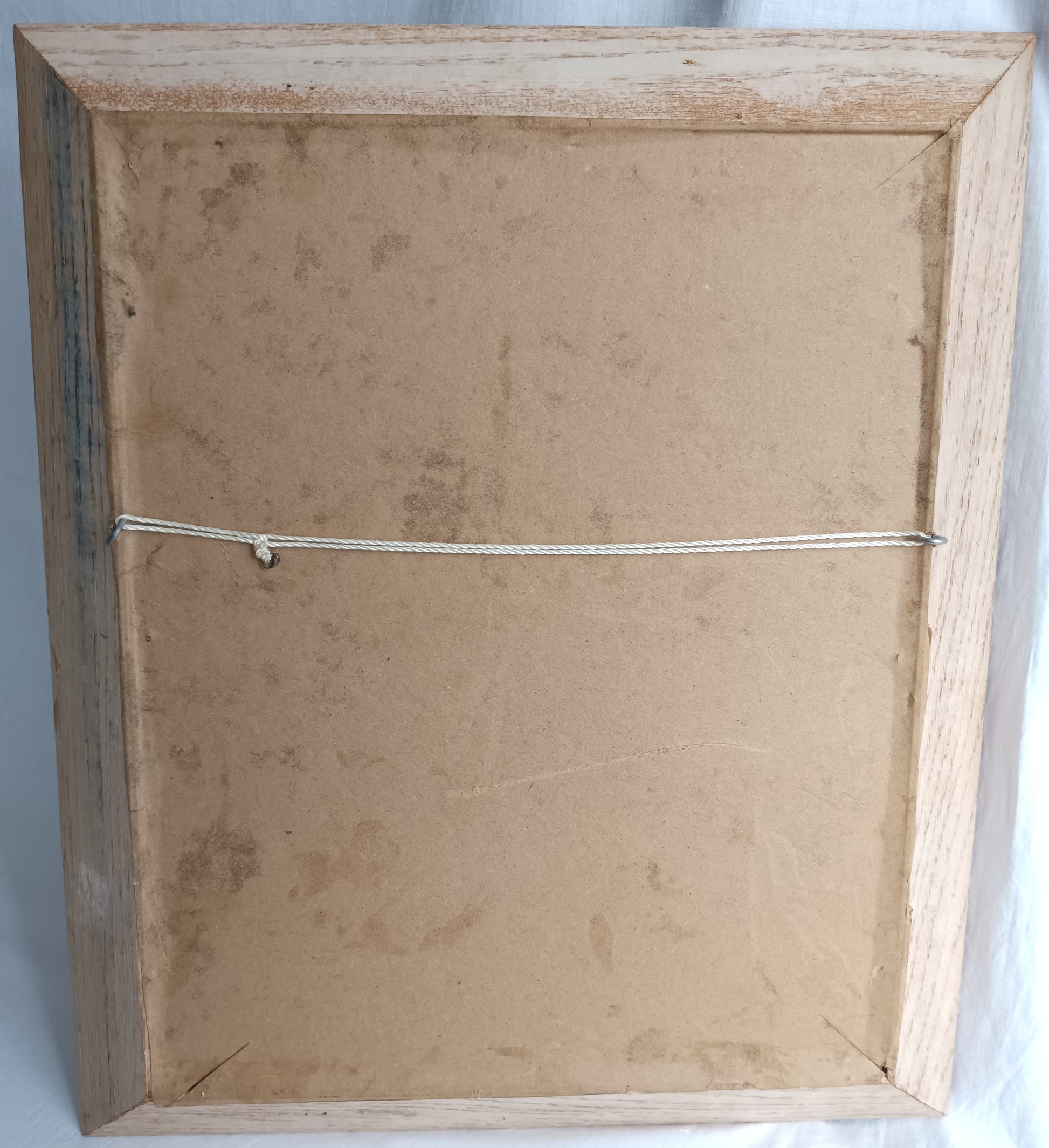 Dimensions approx.: Frame is 14.25” W x 17” H. Painting is 11.5” W x 13.5” H.