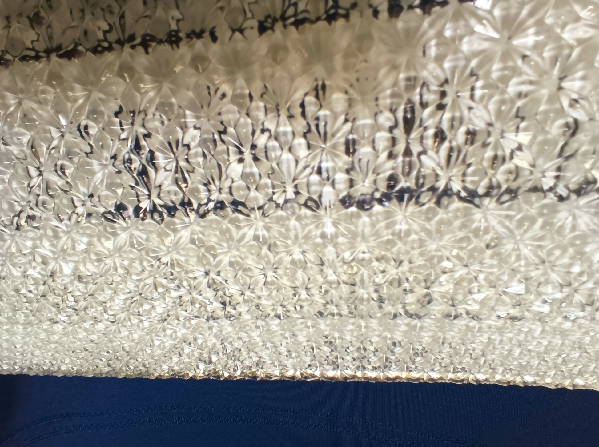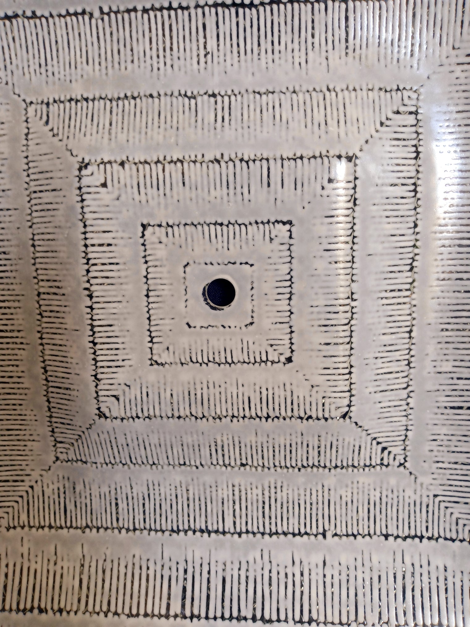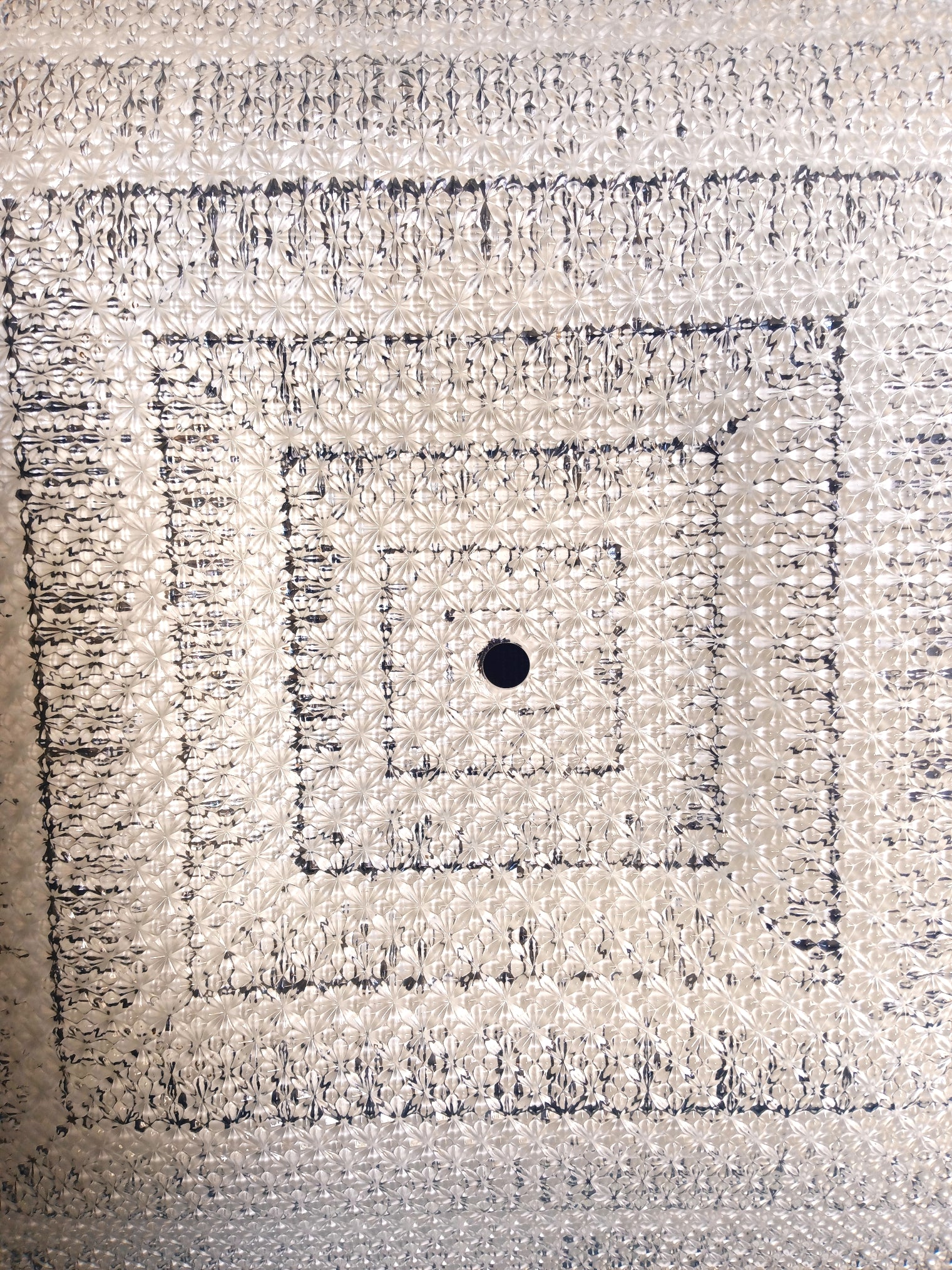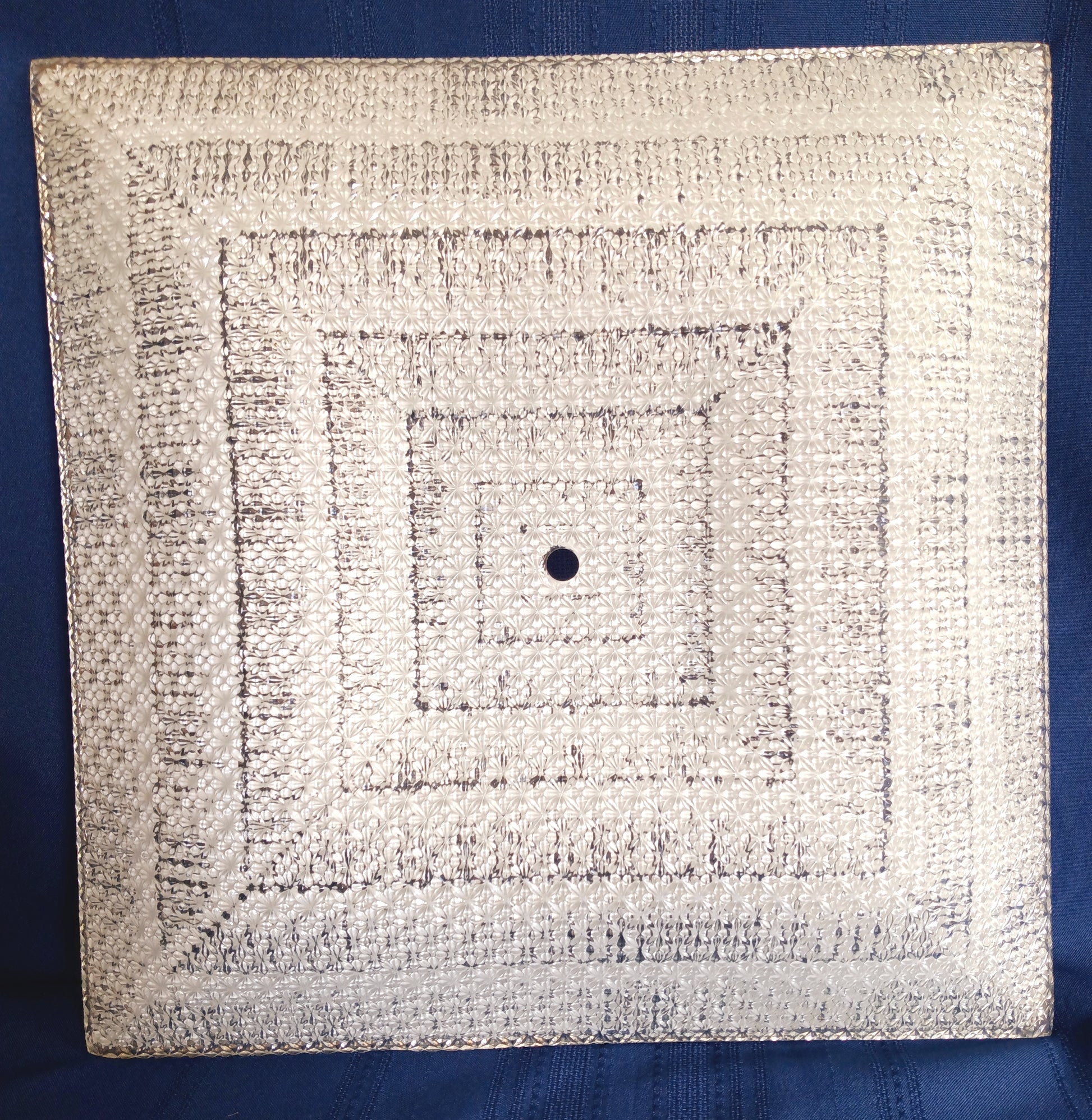 This listing is for a Mid Century Modern square glass replacement lampshade with straight edges for semi flush ceiling light fixture. Exterior of the shade is clear glass with textured/raised floral design. Interior features glossy white geometrical patterns. This is a very heavy glass shade. Stunning piece.