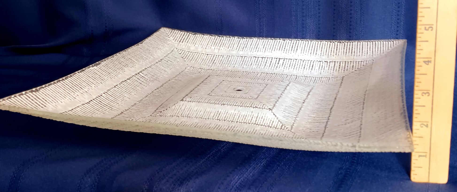 Size approx.: 14” x 14”x 1 ¾” H. Finial opening: ½” D.