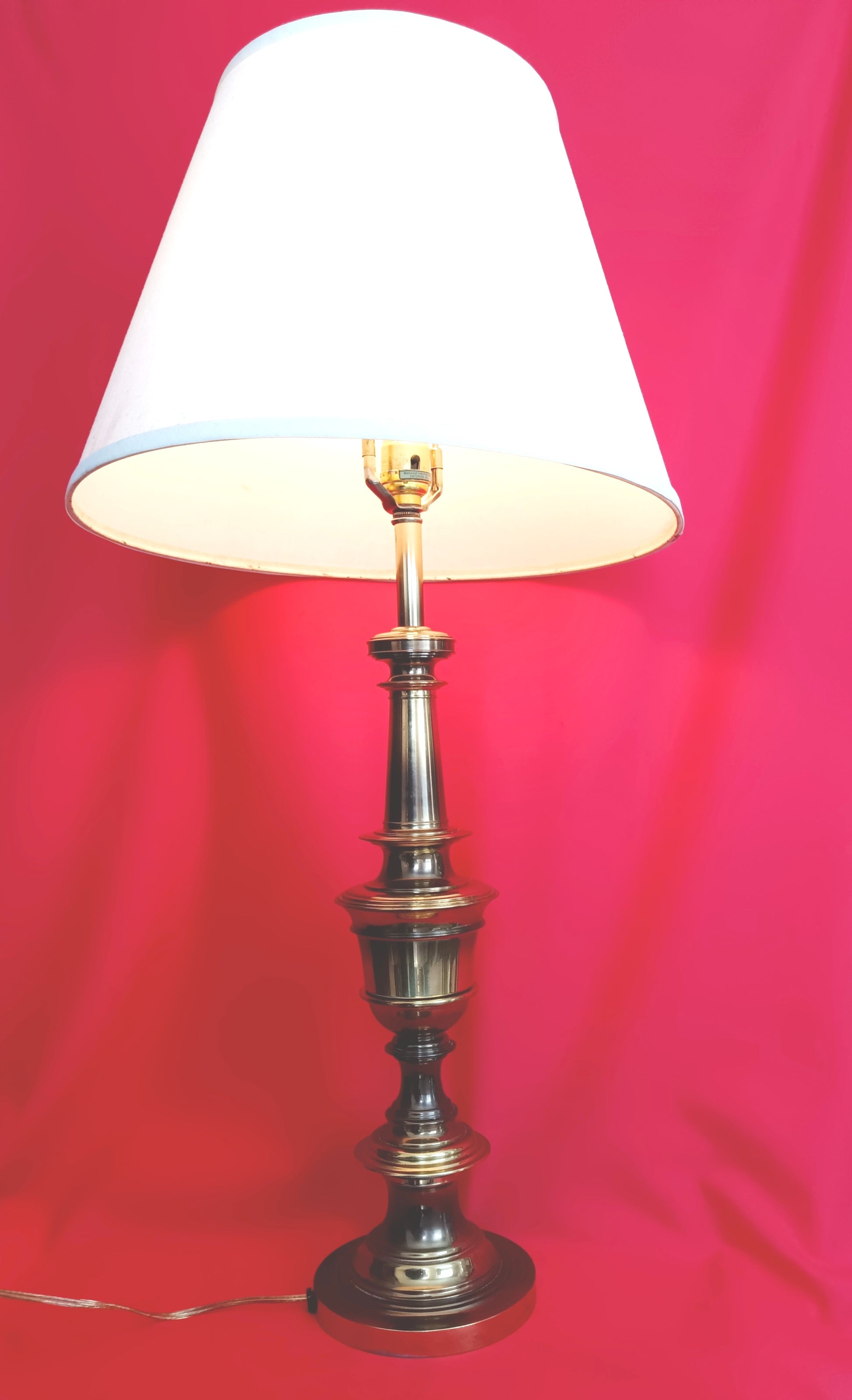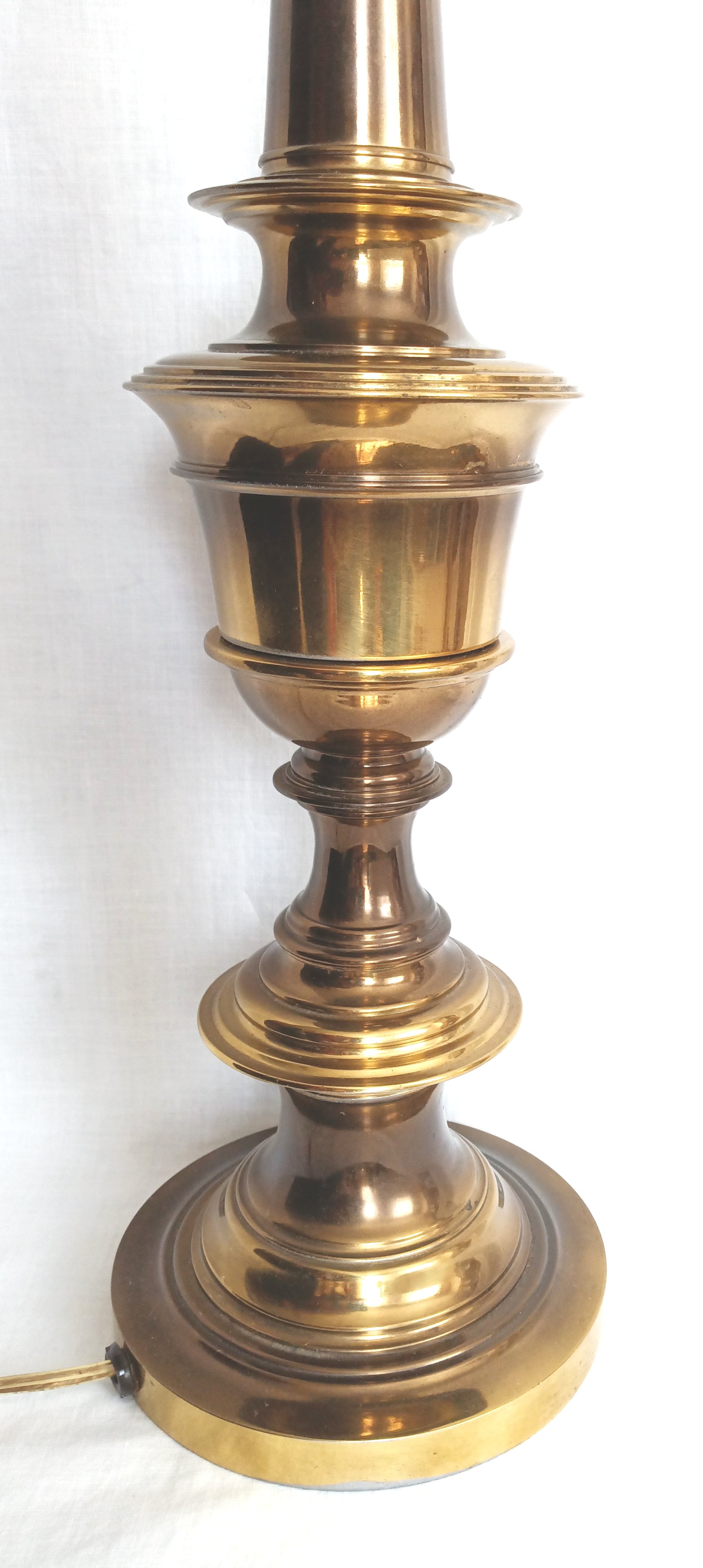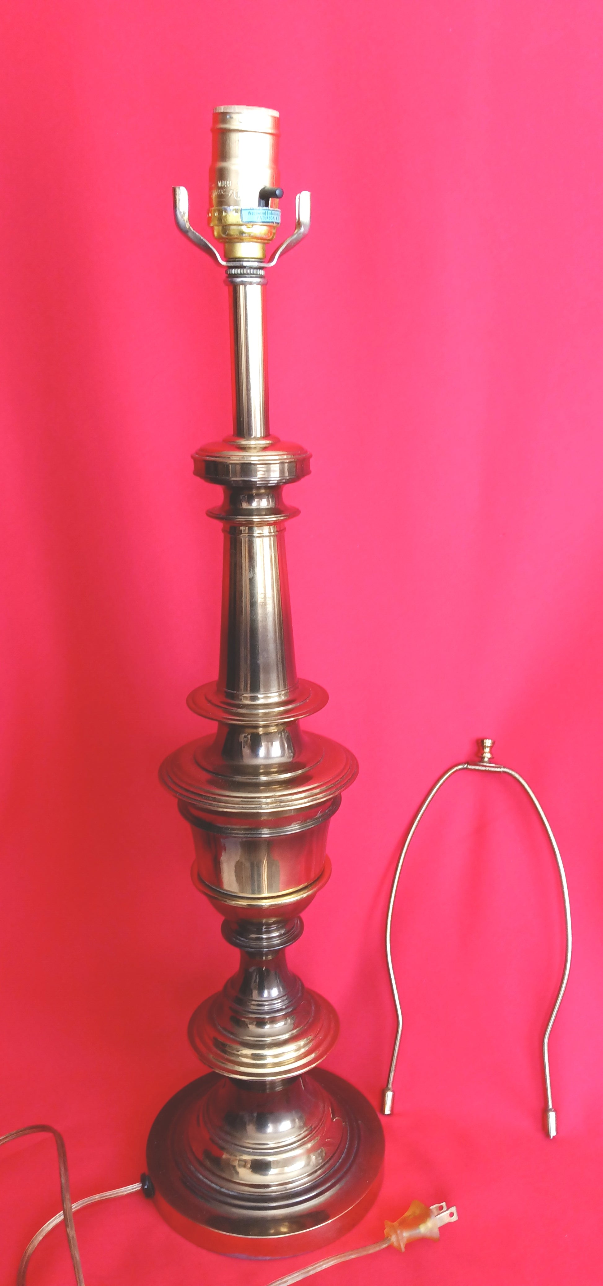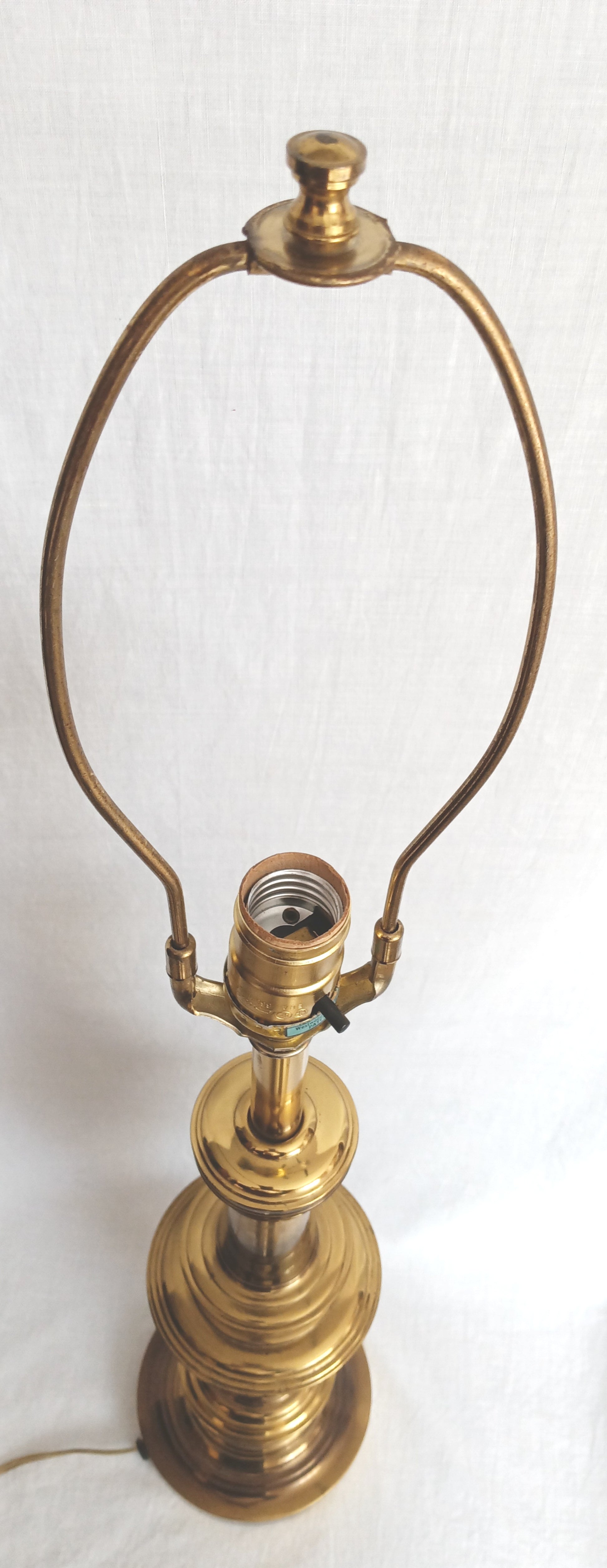 Vintage Mid Century Modern Westwood Ind. Brass Tall Heavy Table Lamp Harp and Finial Hollywood Regency Style