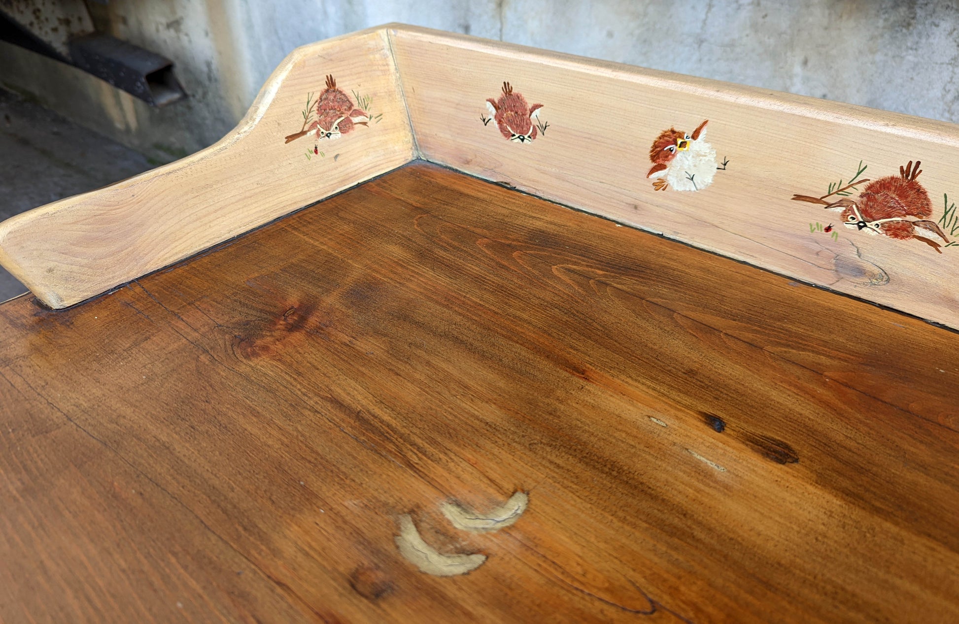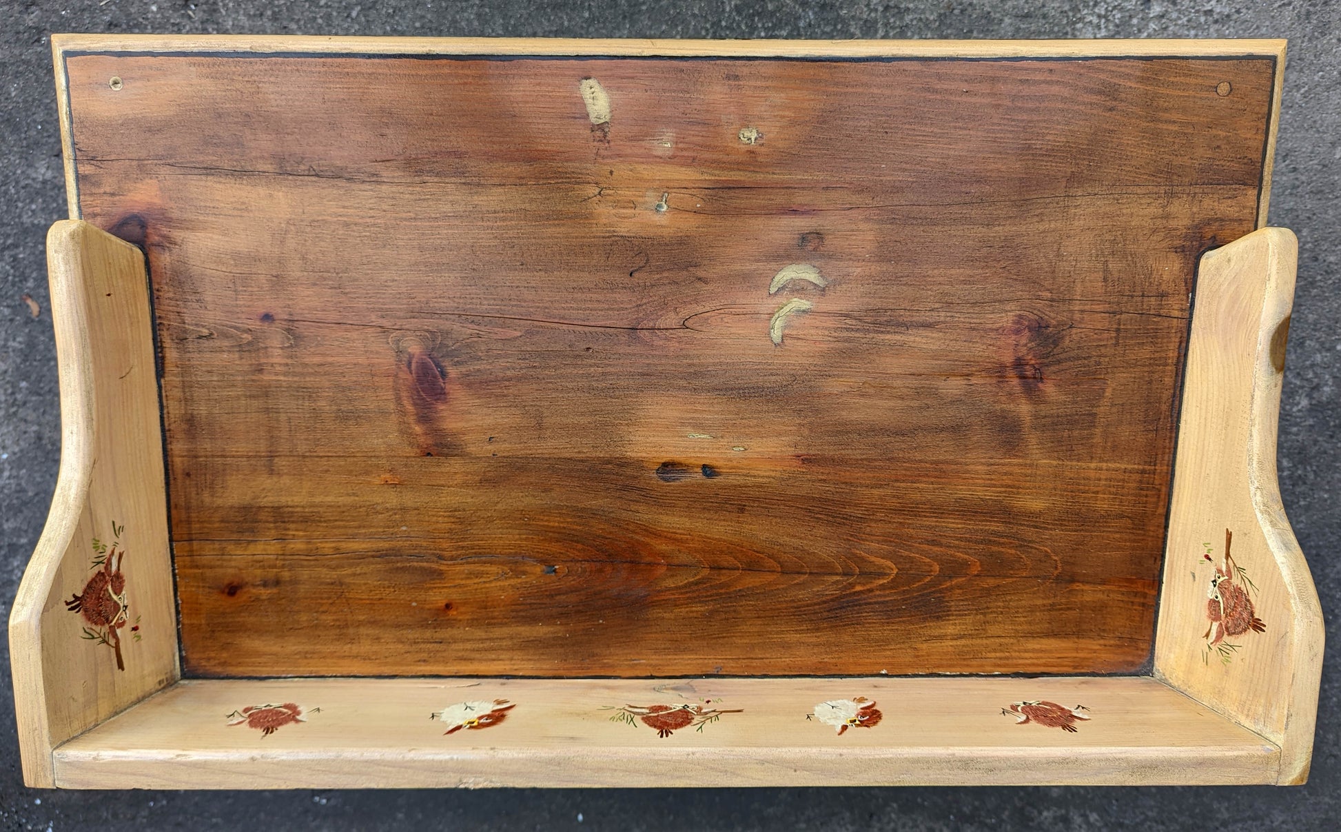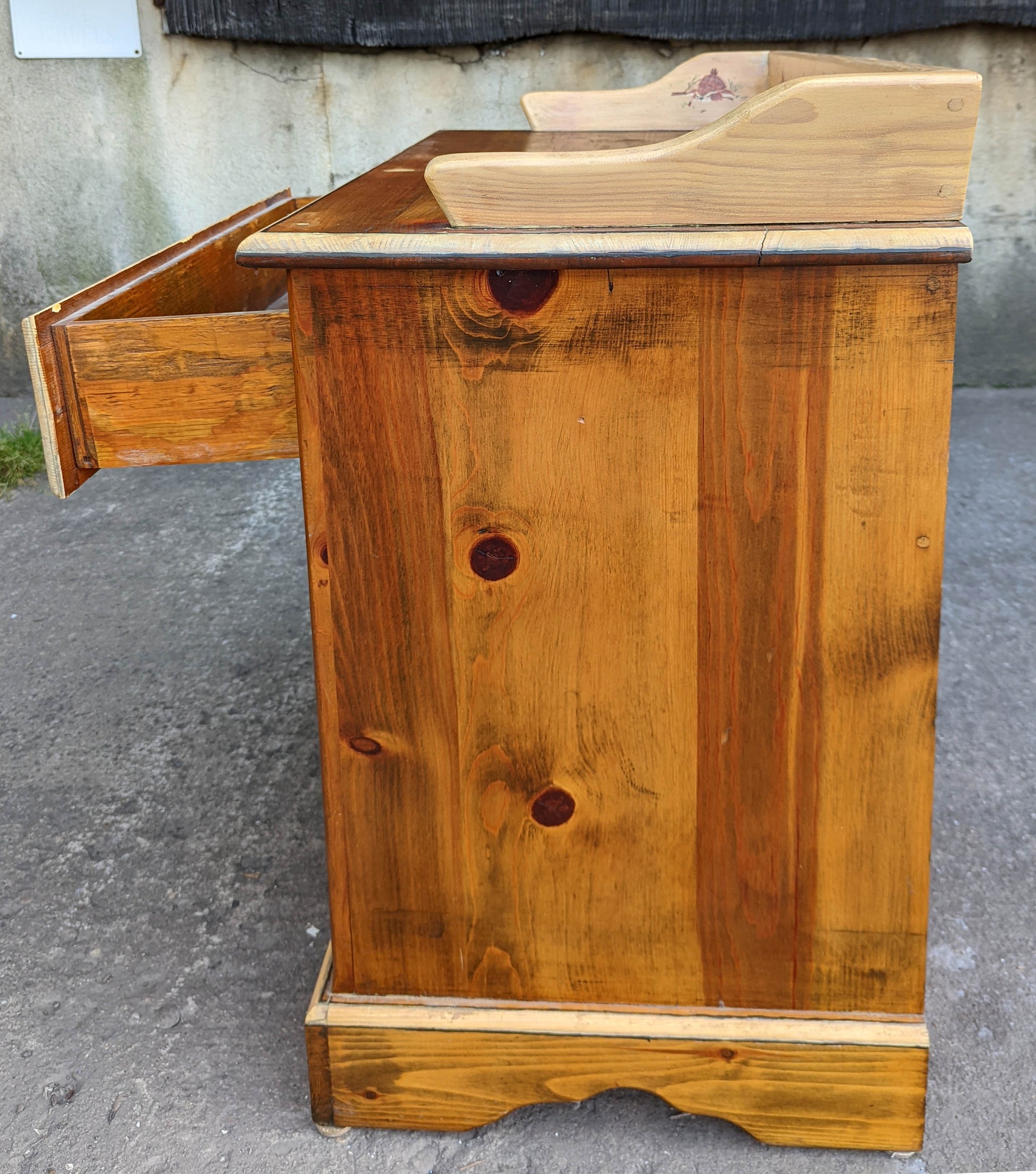 One-of-a-kind, vintage server salvaged from Northeastern PA. A husband made this piece for his wife decades ago. Since it was made with love, it is very well built and 100% solid wood. Some parts were stained a medium-color and others were clear-coated to give a natural, unfinished look. You'll only see unique, two-tone designs like this from homemade furniture.