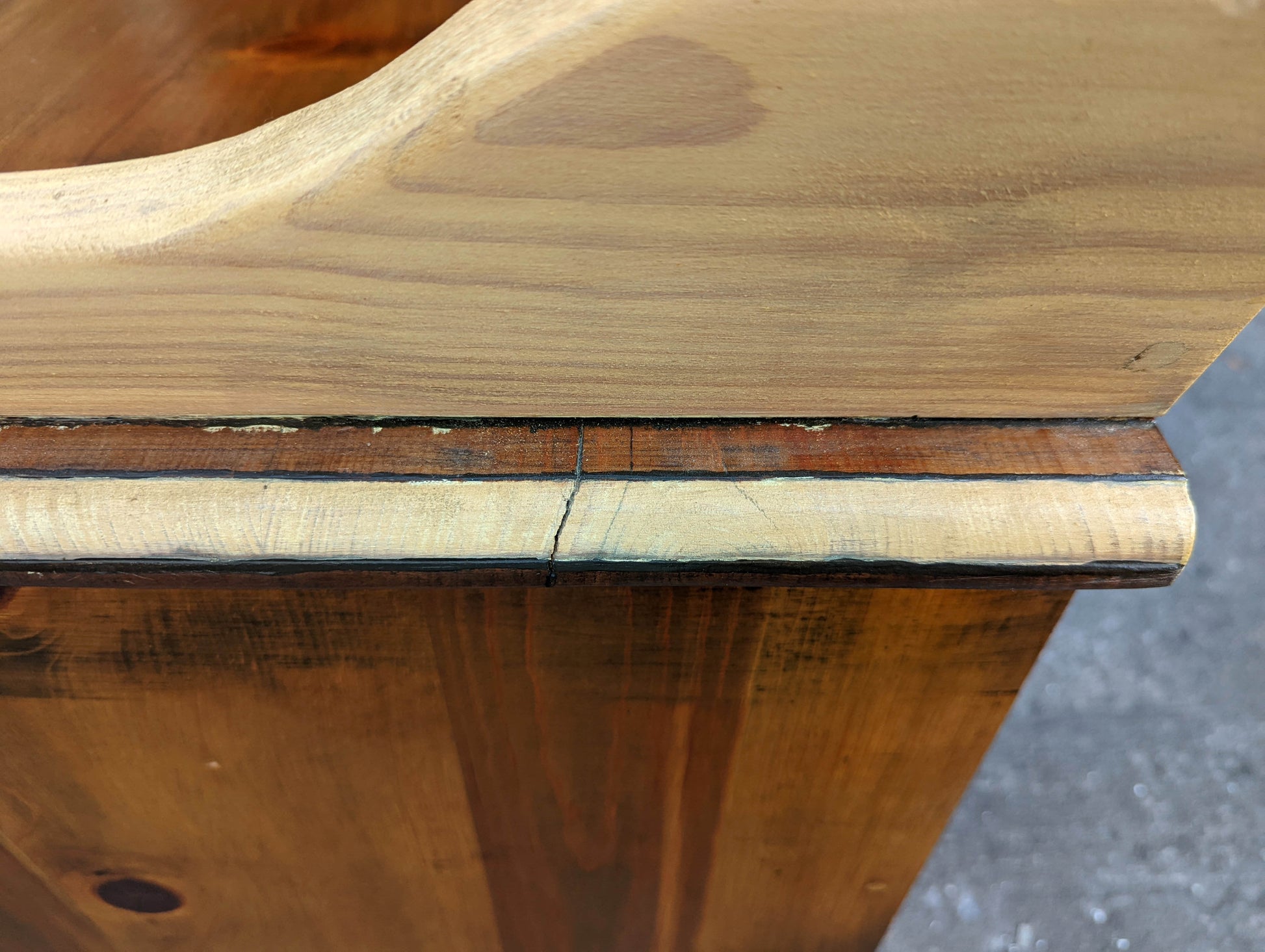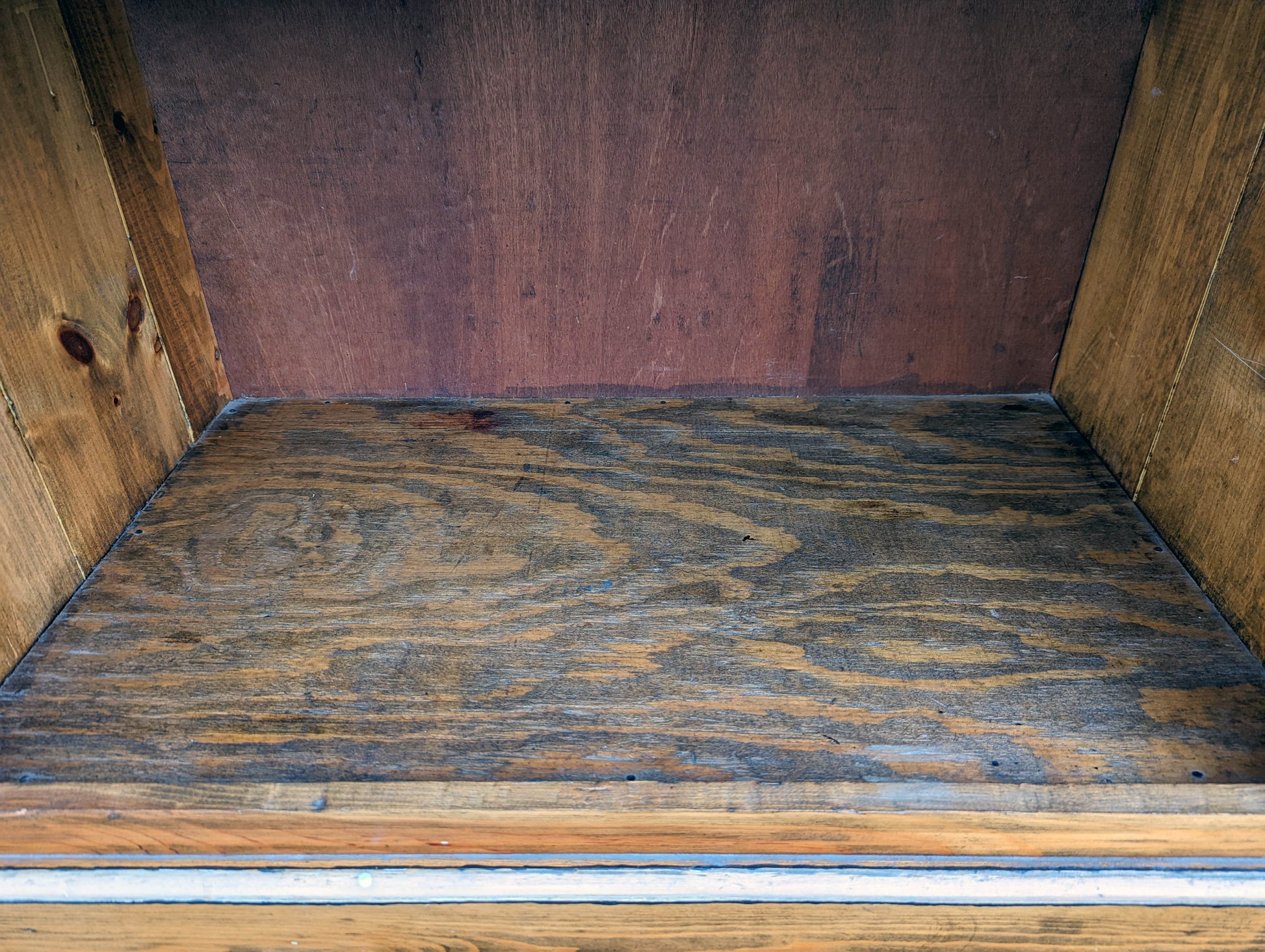 This server was well maintained and is in great condition. It has the typical nicks, scrapes, scratches, and spots of worn finish here and there that you would expect to find on a used, piece of furniture. There is a tiny crack on the rear, side edge (see close up photo). However, there are no breaks, rot, warp, or any other serious flaws.