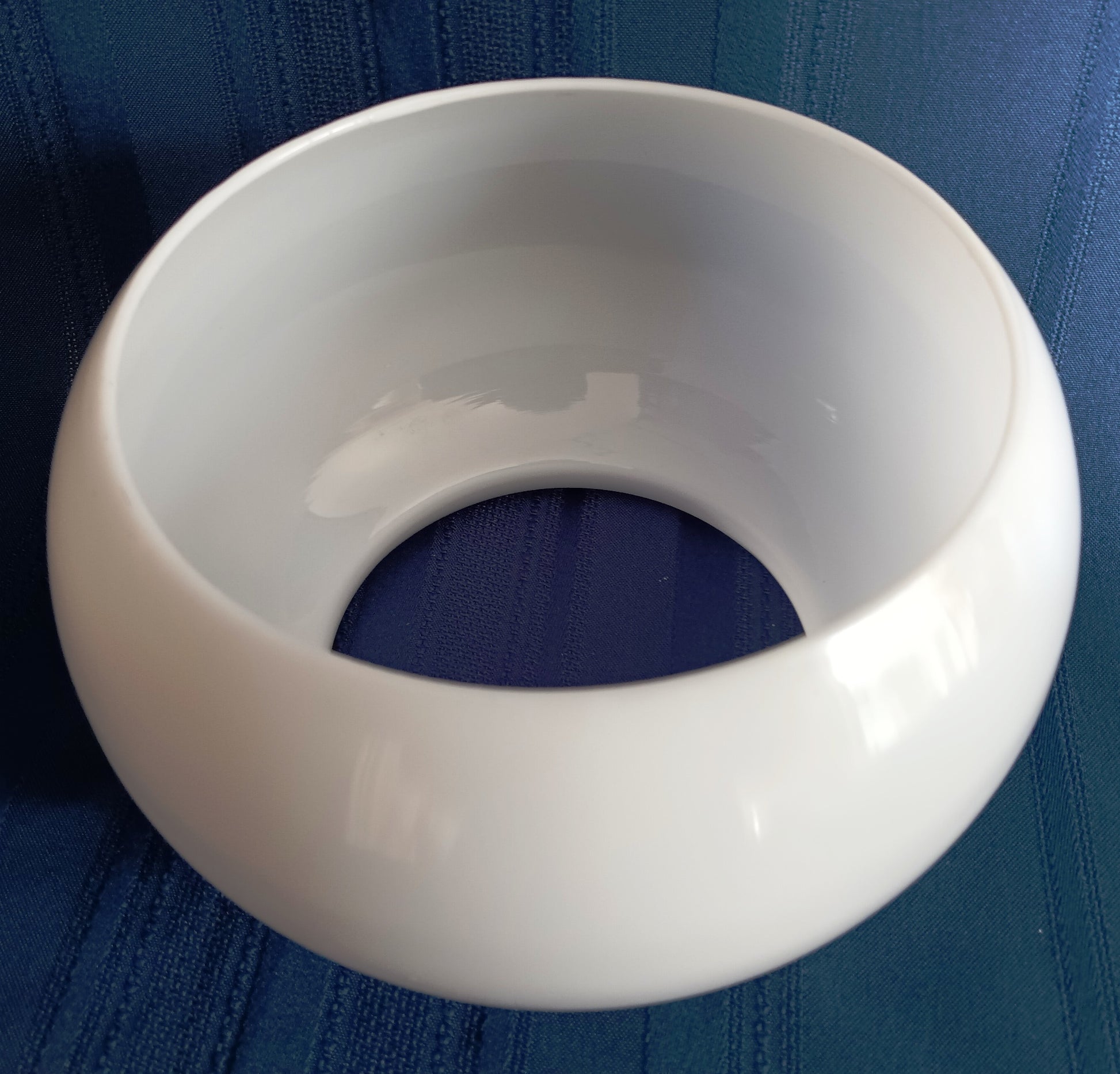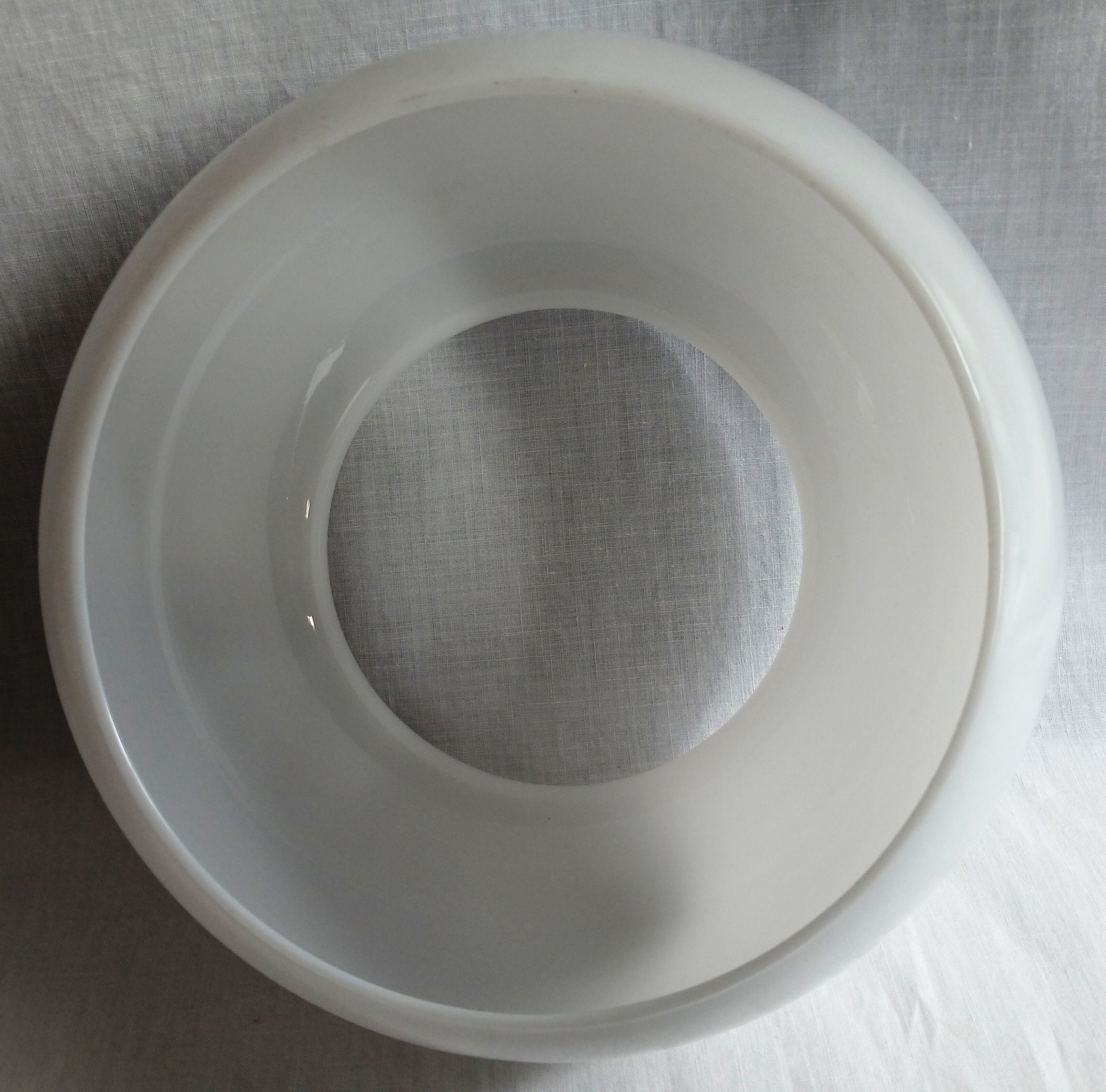 This listing is for a Mid Century opal/milk glass lampshade for gas lamp/pendant/ceiling electric fixture. It features a dome shape with polished edges.