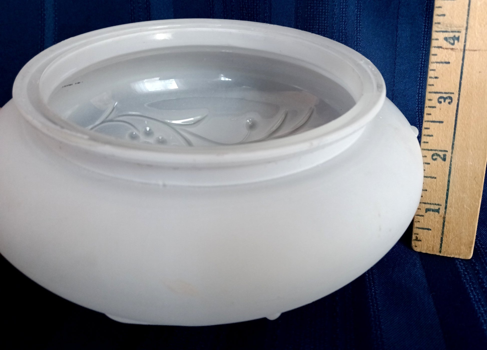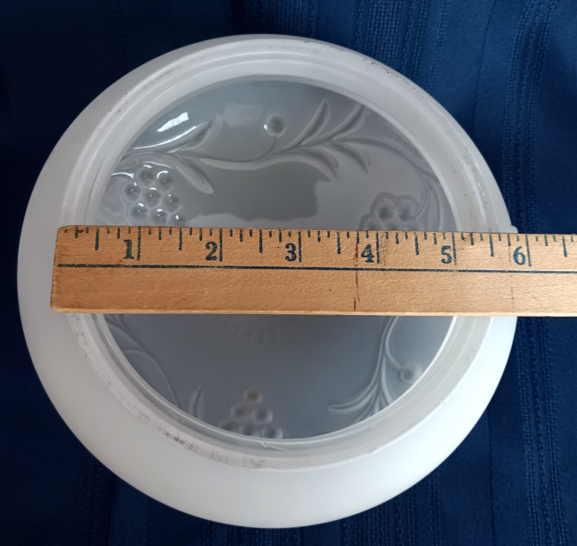 The lamp shade/globe/cover light is in great vintage condition. No chips or cracks. Slight sign of wear and age. Please see pictures. Perfect item to replace any old or broken shade from ceiling light, or wall fixture.