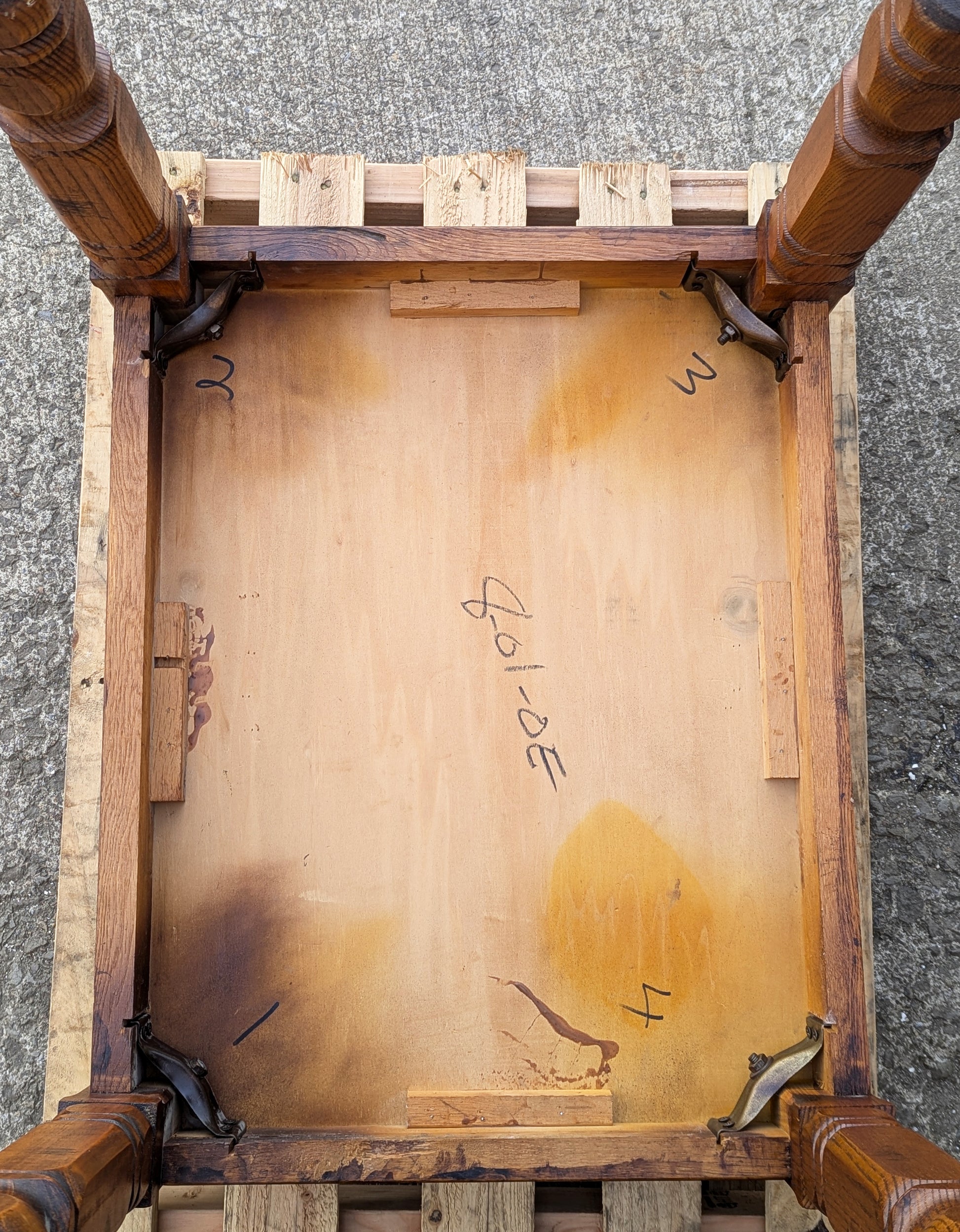 Our carpenter thoroughly inspected the piece and found no repairs to make nor anything to tighten or reinforce. All of the joints are tight, and overall, the table is strong, sturdy, and ready for a lifetime of service!