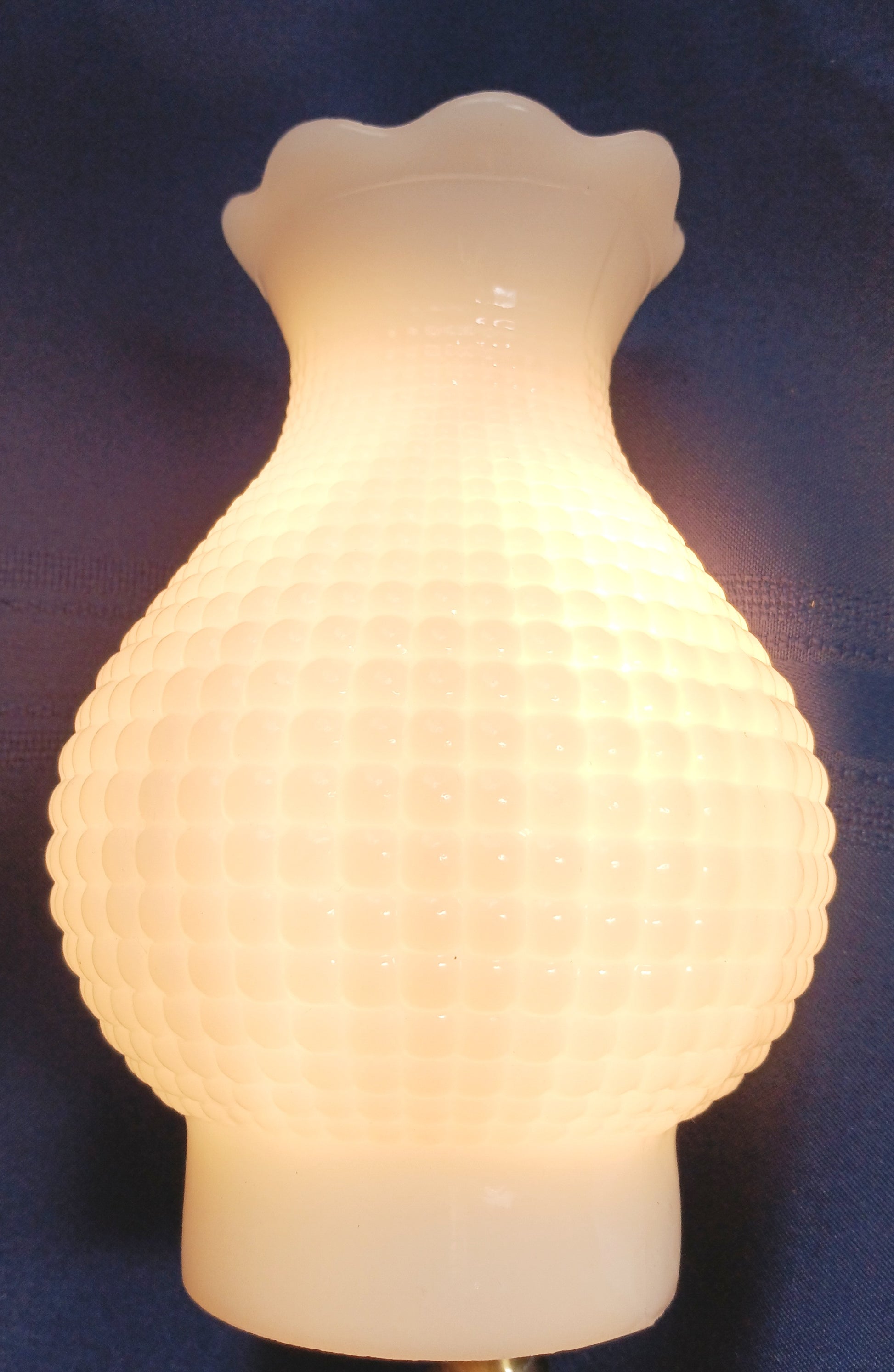 This sale is for a vintage thick white/milk glass lampshade/replacement hurricane chimney/lamp cover globe with hobnail design. Scalloped top.