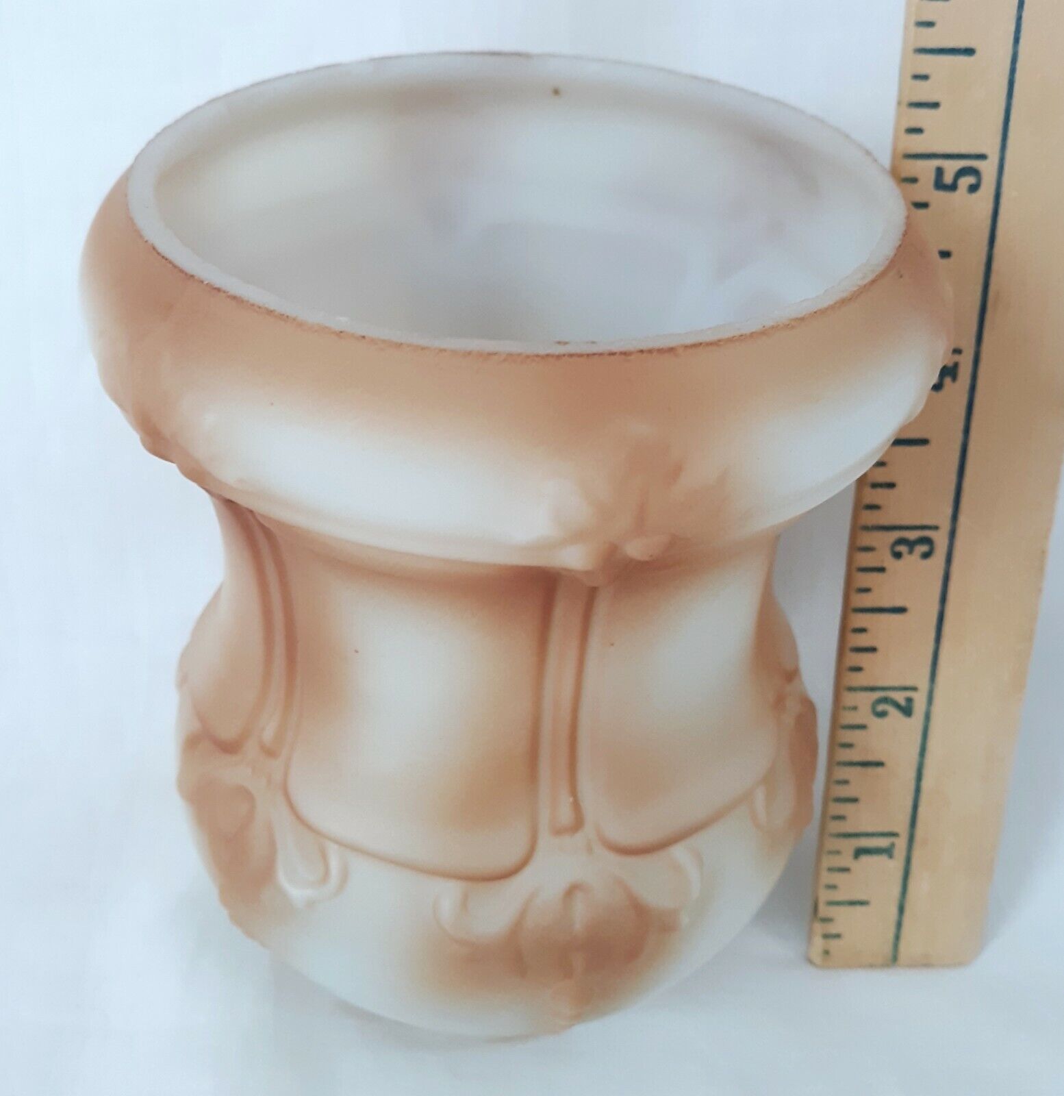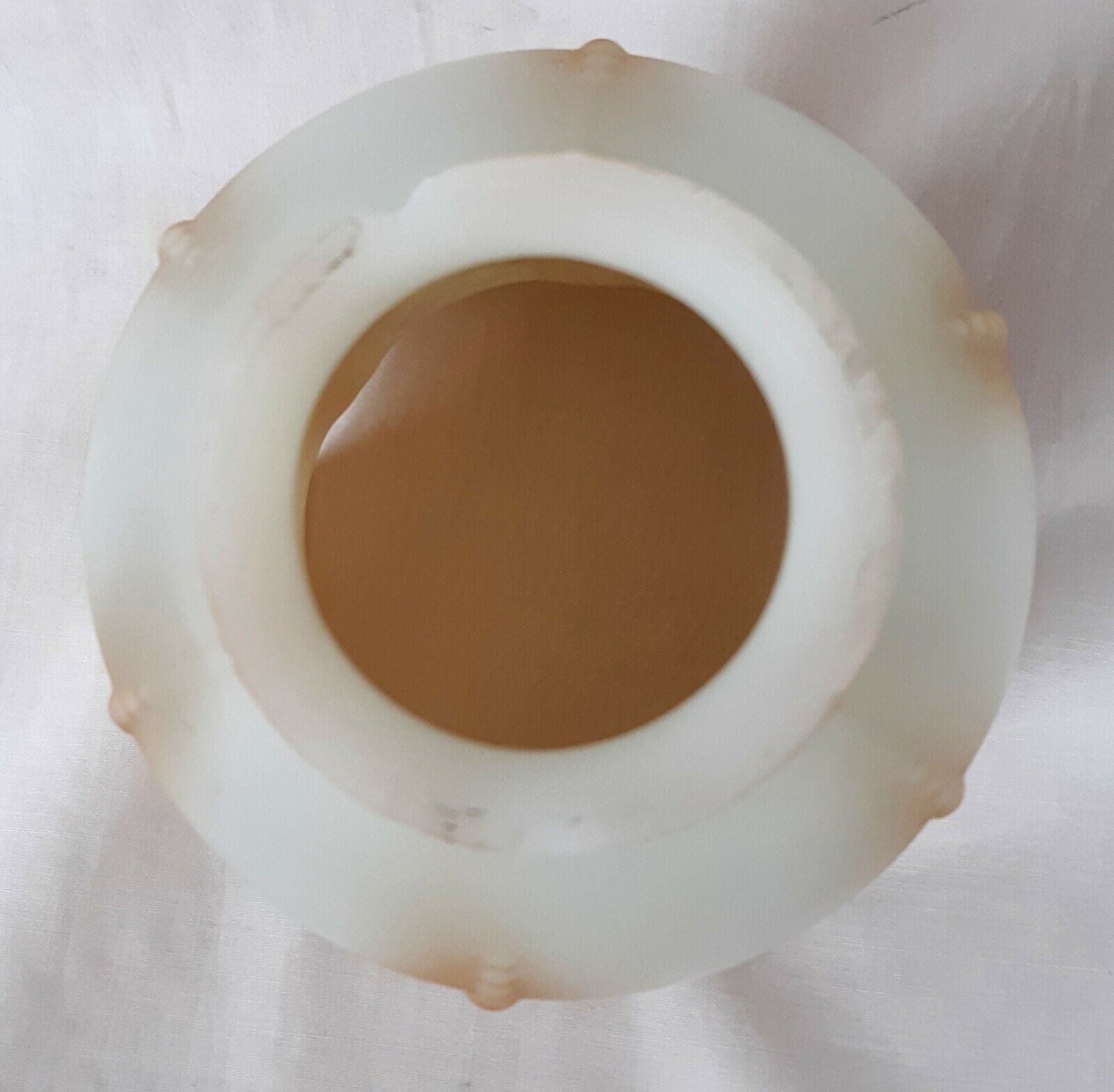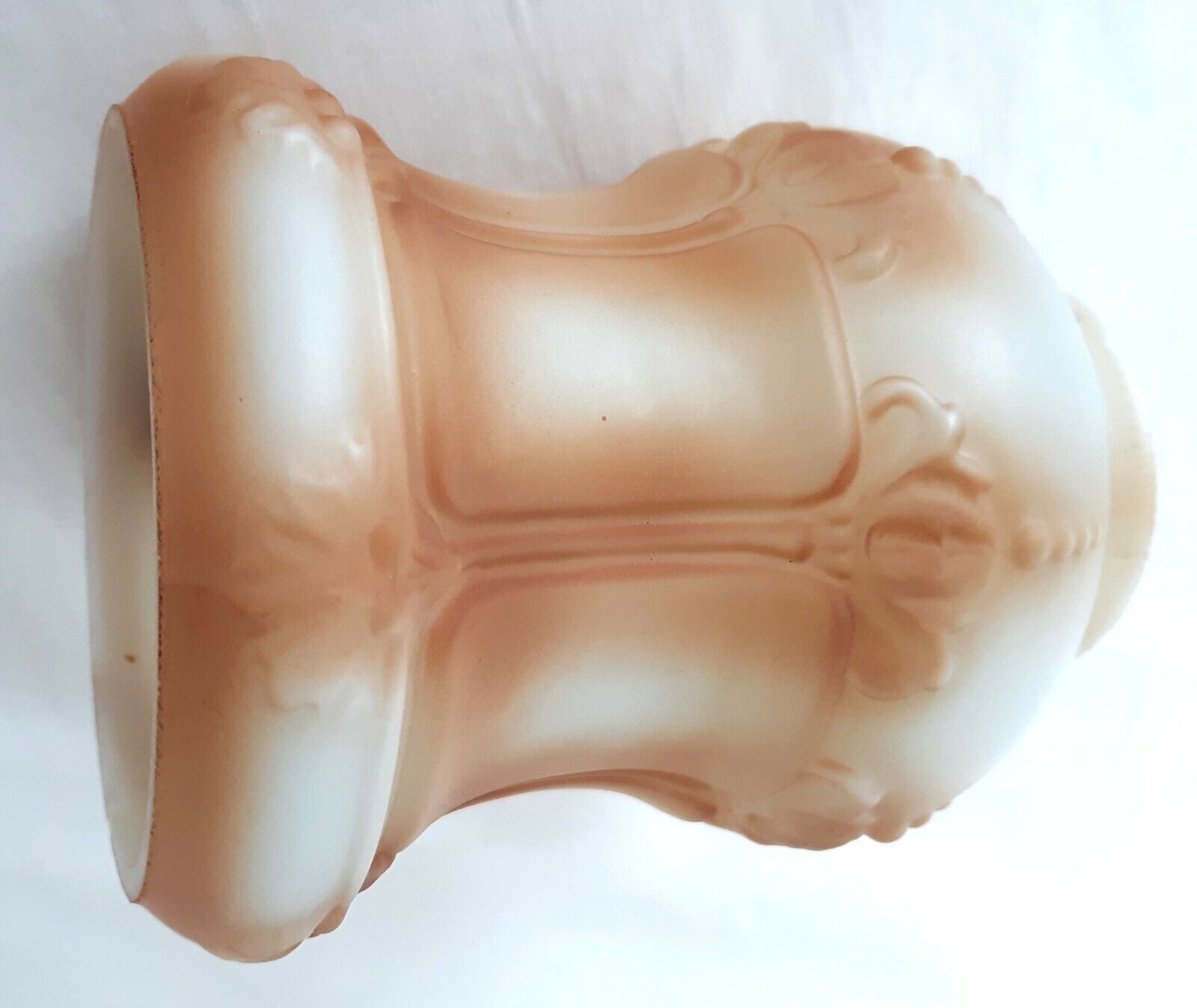 This listing is for an antique Art Nouveau white opaque glass bell shaped lamp shade with embossed design and hand painted brown accents. Lampshade was removed from an old Victorian house outskirt of Philadelphia.