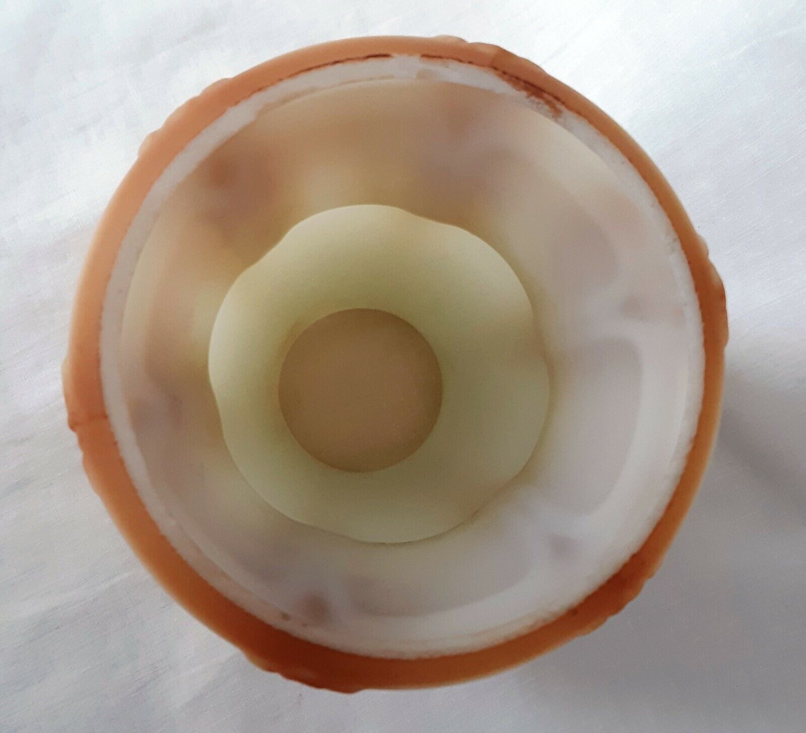 5” H x 4 ¼” W (widest part). Top opening: 3 ¼” D. Opening at bottom: 2 1/8"D.