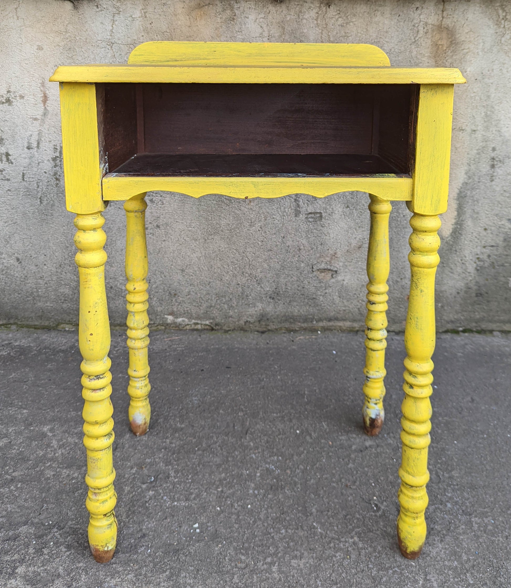 Yellow Vintage Antique Old SOLID Wood Wooden Microwave Oven Nightstand Night Stand Side End Table Cabinet Storage Kitchen Writing Desk