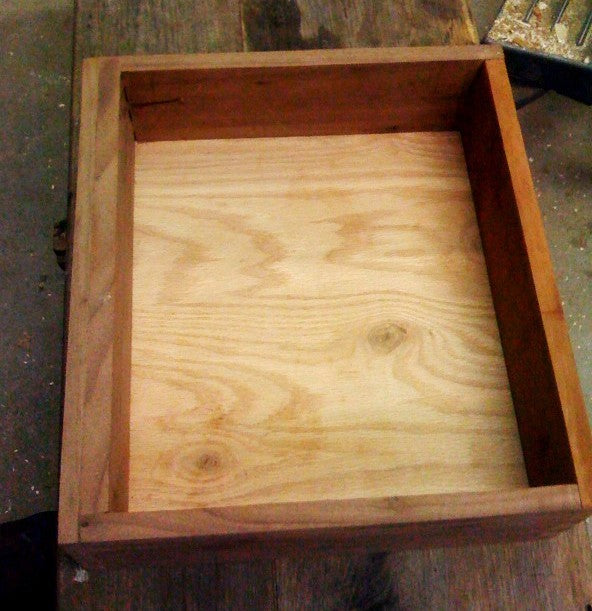 It had a drawer, but the former owner preferred to have an opening that she could easily access from her bed. Although the original drawer is missing, our carpenter could make one (see last 3 photos of one he made before).